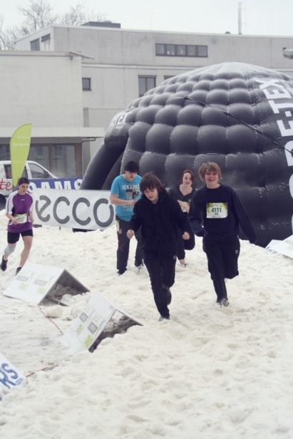 Der Indoor Trailrun ist ein Lauf über natürliche und künstliche Hindernisse. So mussten von den startenden Schülerinnen und Schülern der Jahrgänge 5 bis 9, die vornehmlich aus den Sportklassen kamen, ein 1,2 KM langer Rundkurs abgelaufen werden. Dabei ging es durch Matschstrecken, über quer liegende Baumstämme, durch Aufforstungen, eine Schrägwand hoch, durch ein kaltes Schneefeld im Außenbereich – bei ca. -10°C Temperatur - und über diverse Untergründe.