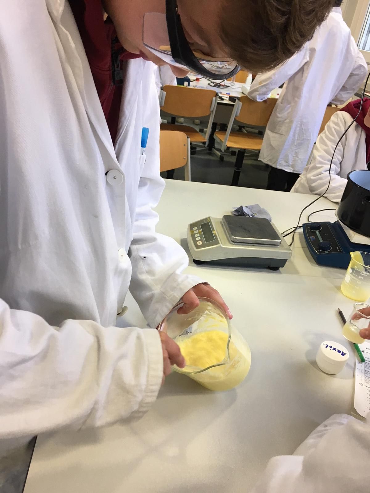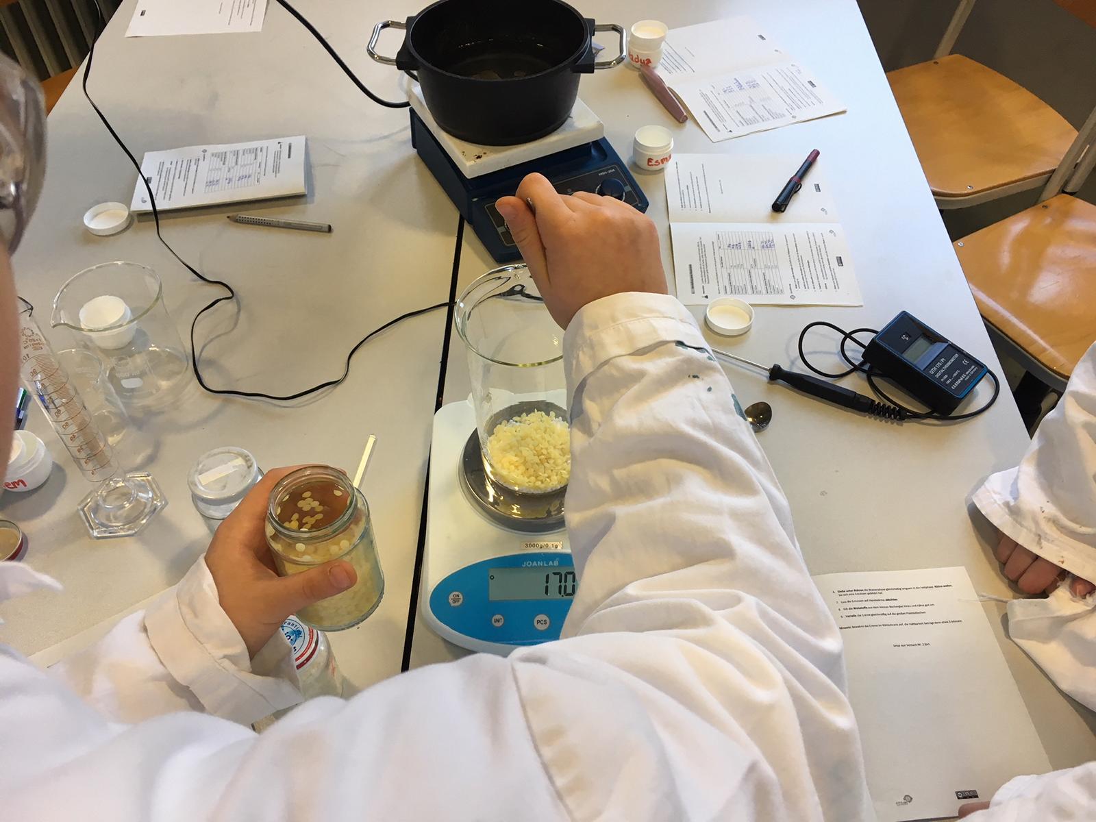 Am 11.12.2018 war die 8a im KitzDo zum Modul „Mischen, rühren, analysieren“. Dabei geht es um die Herstellung von Handcreme, Lippenbalsam und Lavendelparfum.