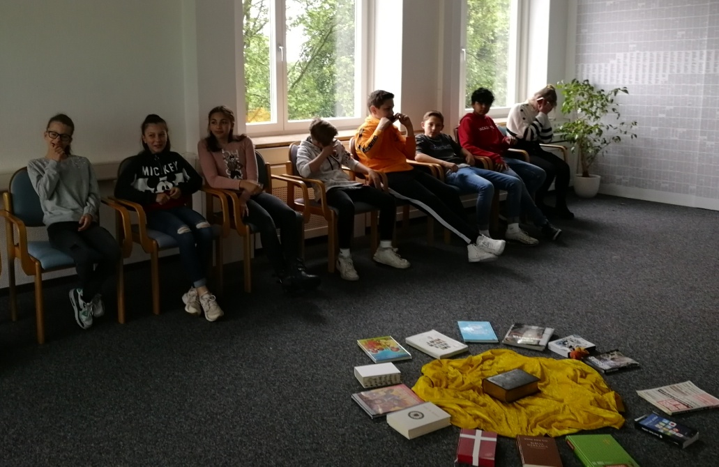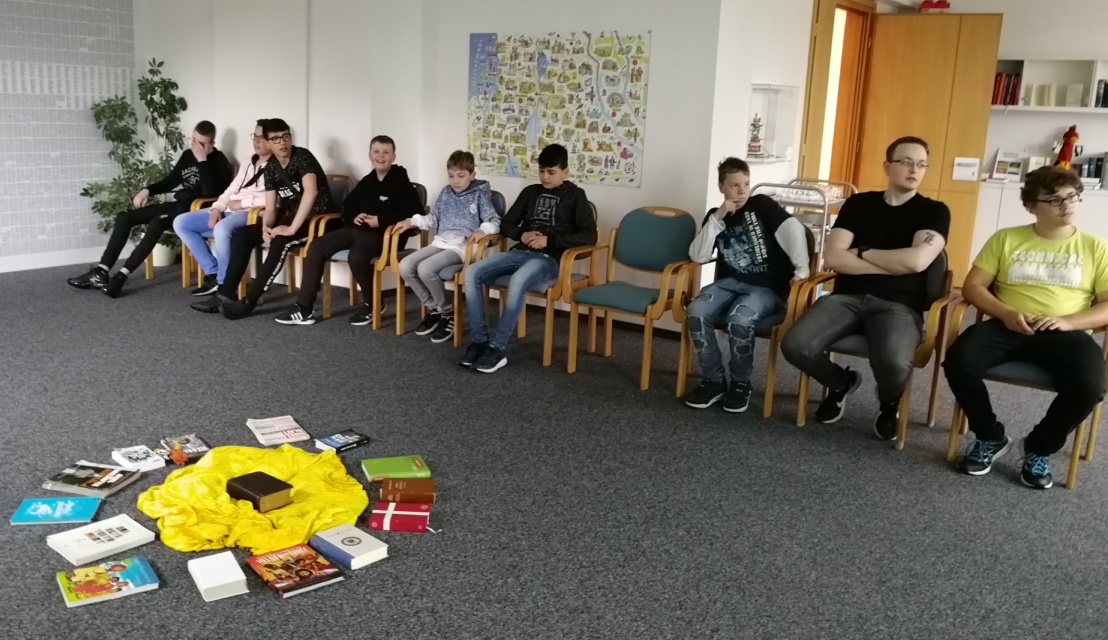 Zum Abschluss der Unterrichtsreihe zu Martin Luther hat der katholische Religionskurs in Klasse 7 die Bibelwerkstatt besucht. Dort konnten die 20 Schülerinnen und Schüler fast 40 verschiedene Bibelverfassungen erkunden. Ganz fasziniert waren sie von den Manga- und Mincraft-Bibeln. In den Räumen der Bibelwerkstatt gingen die Schüler auf Entdeckertour. Sie haben unter Anderem die kleinste, eine wasserfeste und die Hörbibel kennen gelernt. Zum Abschluss haben sie in einem Wettkampf ihr Wissen in einer Rallye durch die Bibelwerkstatt angewandt.