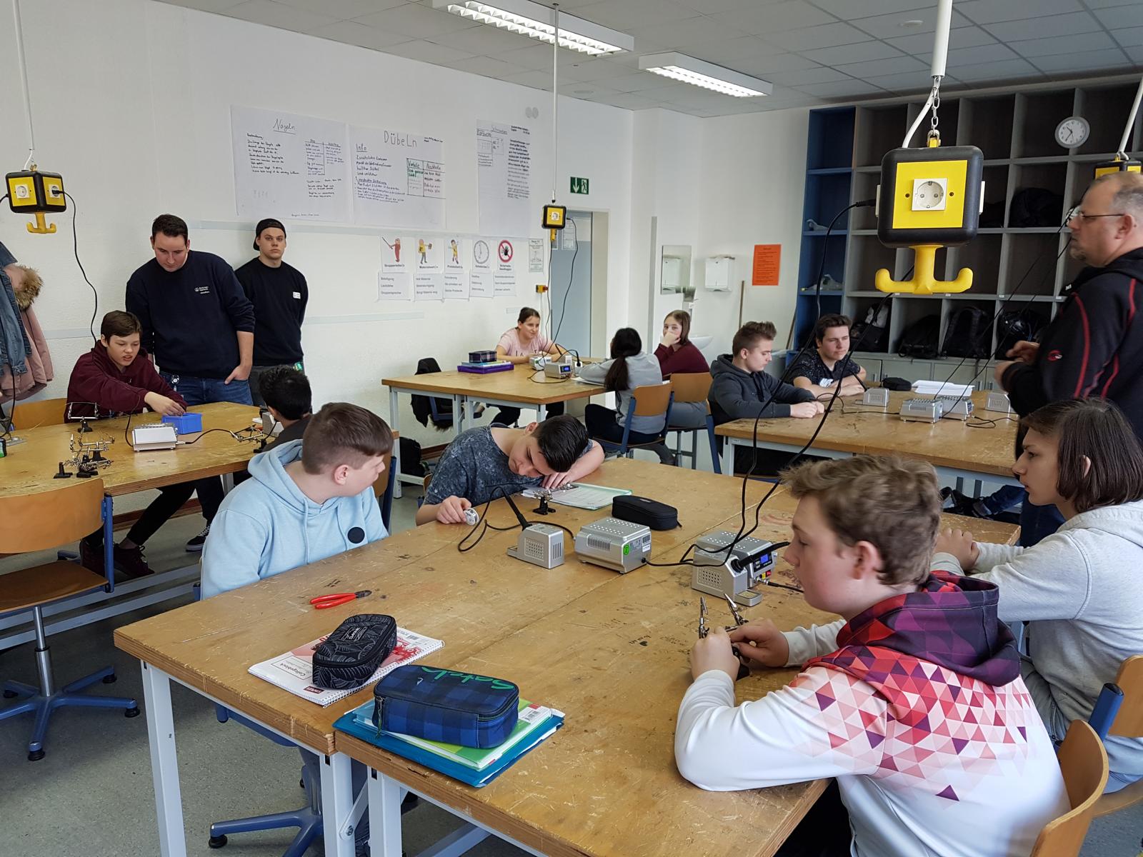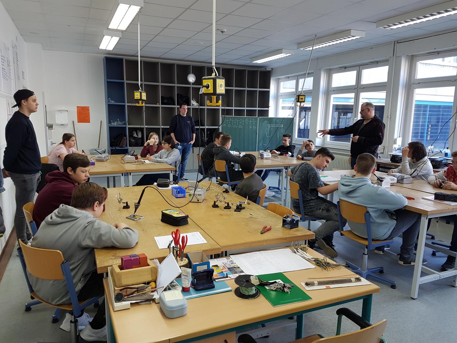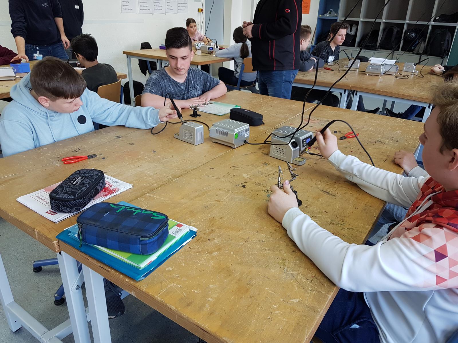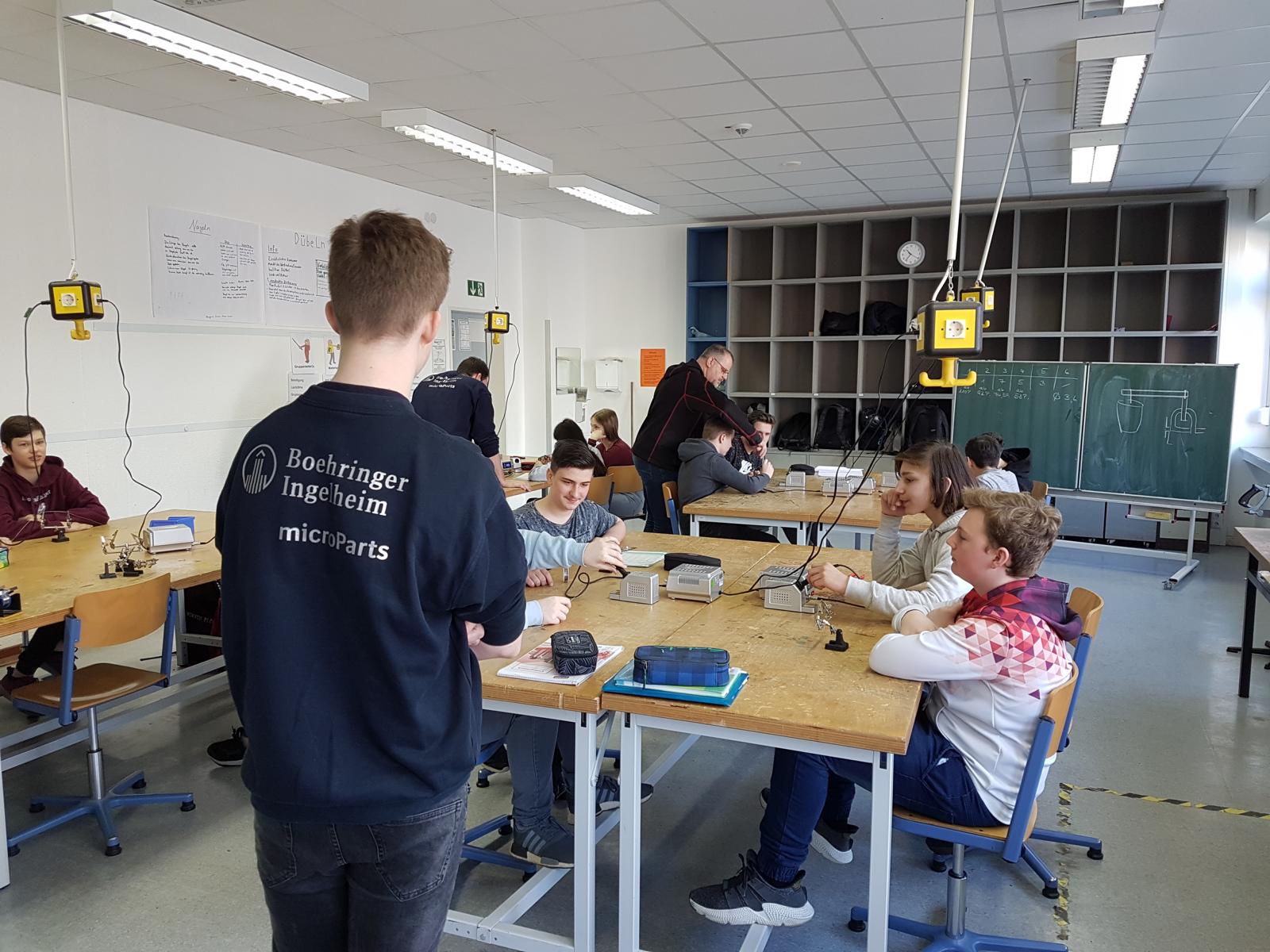 Am 22.03.2019 war Boehringer Ingelheim Microparts zu Besuch in der RKR. Zunächst kam der Technikkurs 7 mit dem Ausbilder und den Azubis ins Gespräch, anschließend konnte sich der Technikkurs 8 von den Azubis das Löten erklären lassen und ein bisschen Berufsausbildung schnuppern.