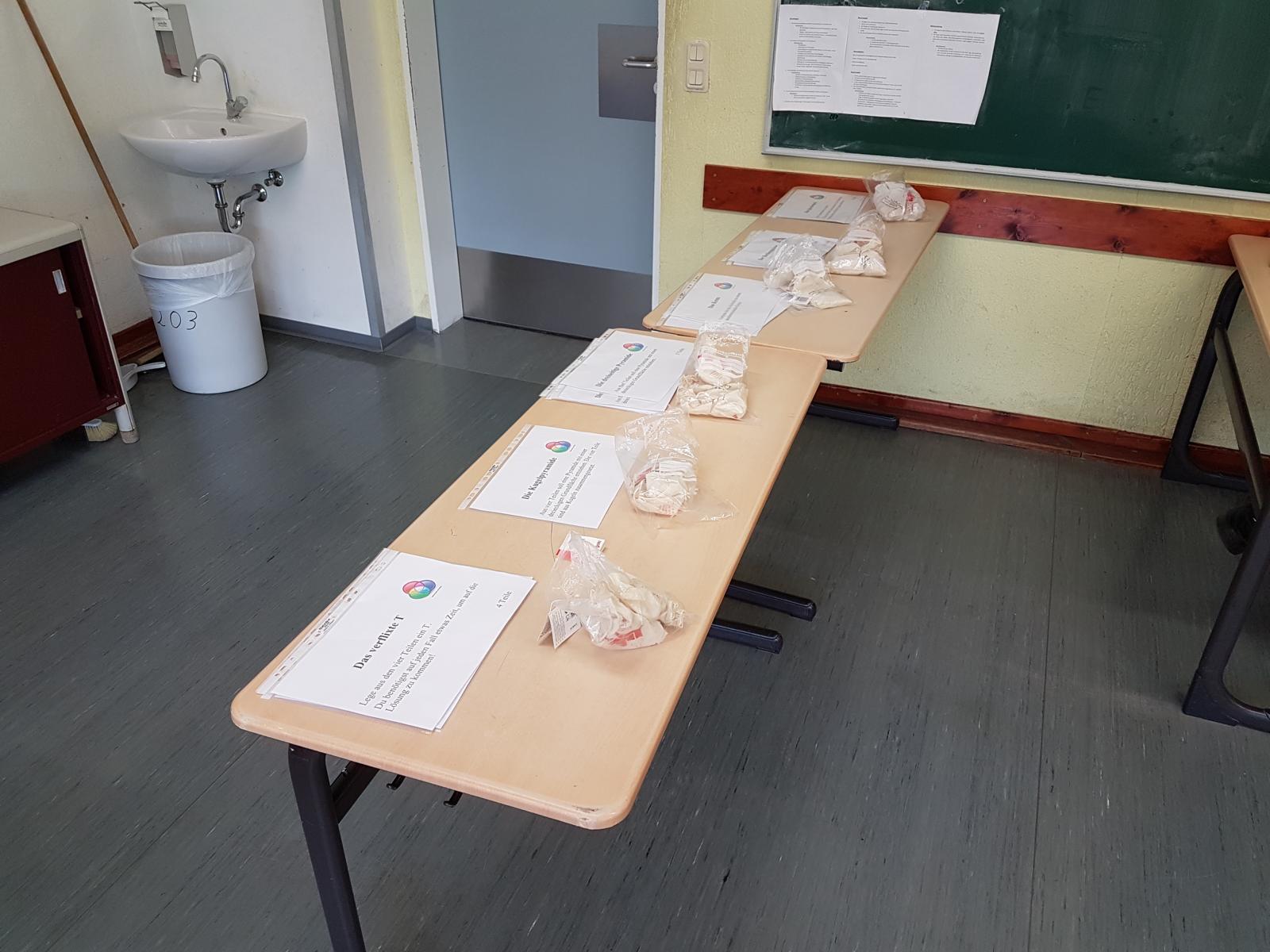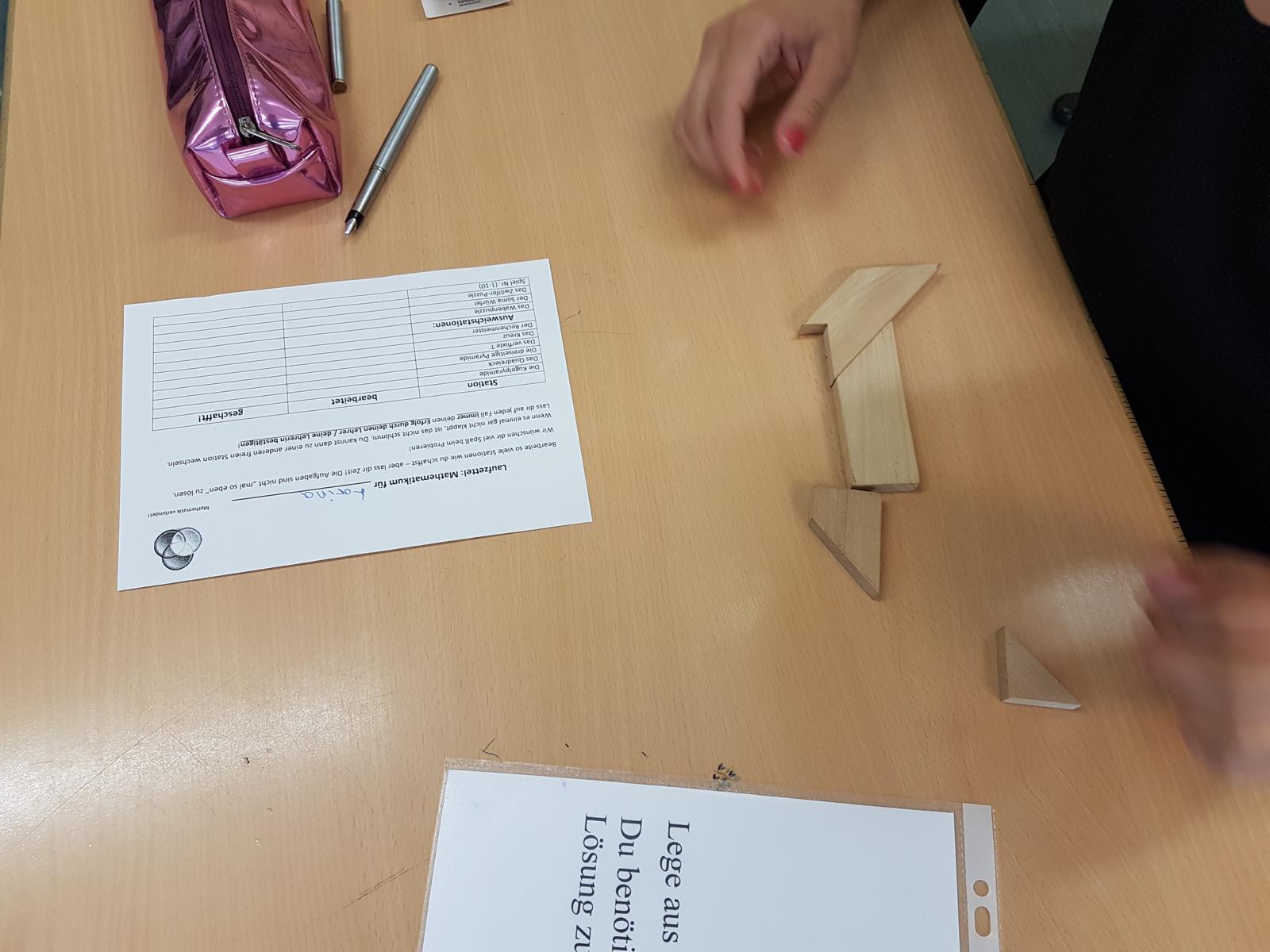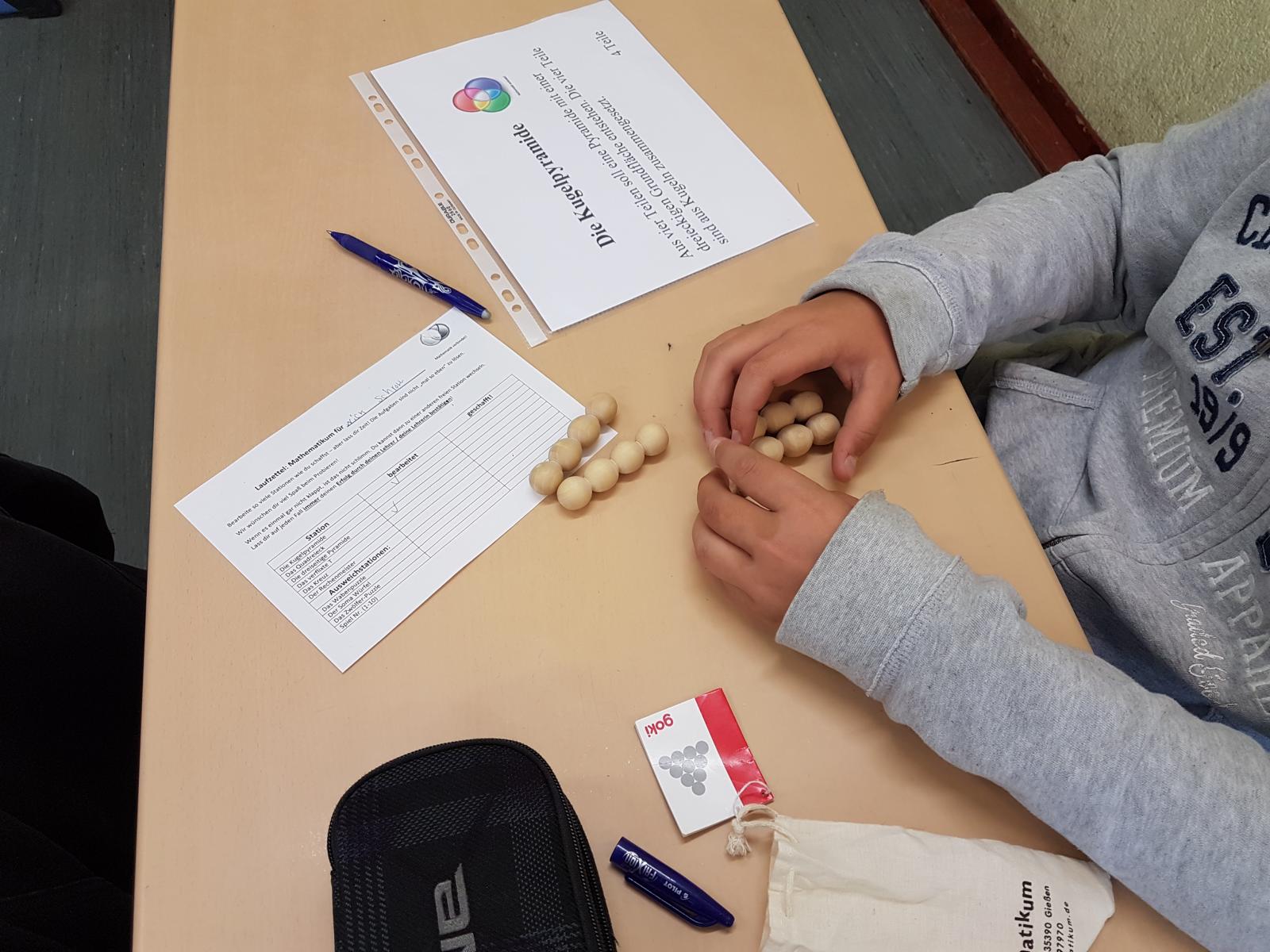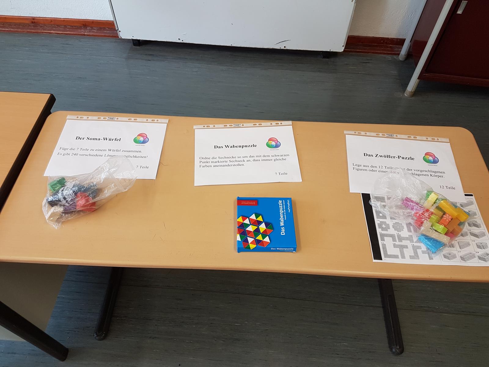 Am Ende des Schuljahres haben alle 6. Klassen wieder das Mathematikum durchlaufen. Hierbei gibt es 6 Stationen mit mathematischen Knobeleien und zusätzlich noch vier weitere Aufgaben. Die häufigste Äußerung war: "Das geht doch gar nicht!". Mit ein wenig Geduld lassen sich jedoch natürlich alle Stationen lösen, wobei die grauen Zellen aller mächtig in Schwung kamen!