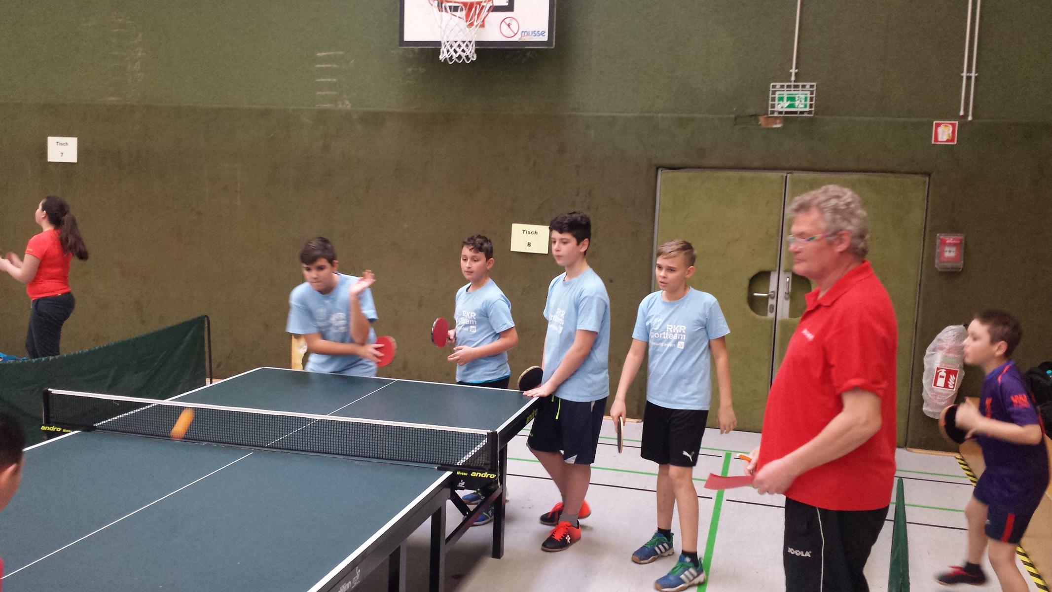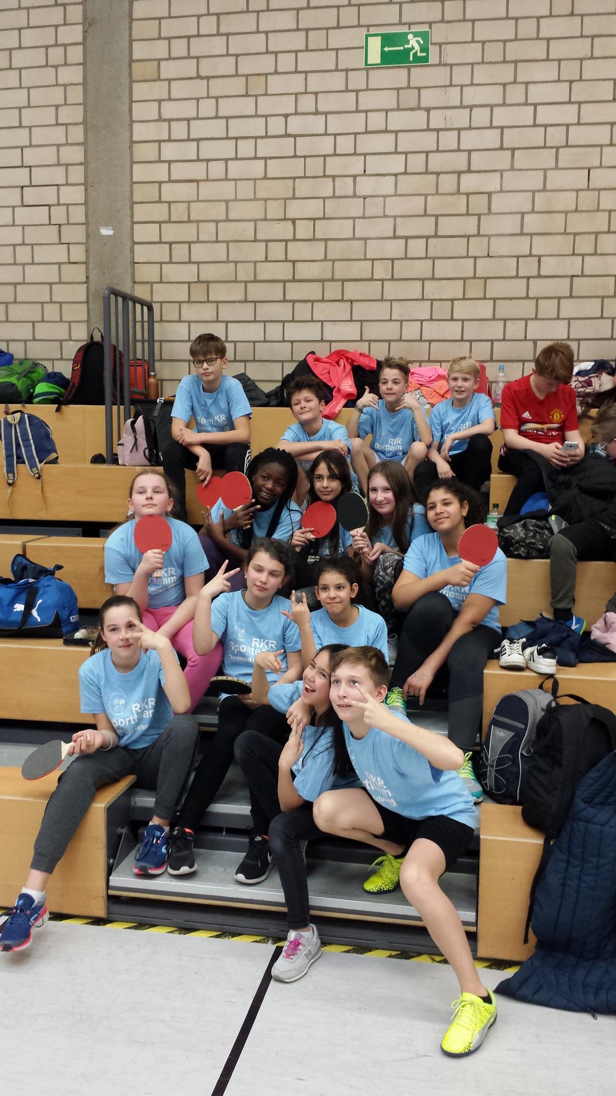 Der gestrige Mittwoch (20.02.2019) bot rund 20 Schülerinnen und Schülern der RKR ein besonderes Erlebnis, denn in unserer Halle fand das Bezirksturnier des Milch-Cups statt. Rund 25 Schulen schickten ihre Tischtennis-Rundlauf-Profis aus den Jahrgängen 3-6 an den Start, um auszuspielen, wer zum Landesturnier nach Düsseldorf fahren darf. Begleitet von Herrn Tischer-Rieser erreichten das Mädchenteam der 6b (Fiona, Latifatou, Cheyenne, Bahar und Malina) und das Jungenteam der 5a (Roman, Walid, Tino, Mika und Henry) das Viertelfinale. Am Ende des Tages standen ein erfolgreicher Turnierablauf in einer vollen Halle und vor allem viel Spaß und eine tolle sportliche Erfahrung für die Schülerinnen und Schüler.