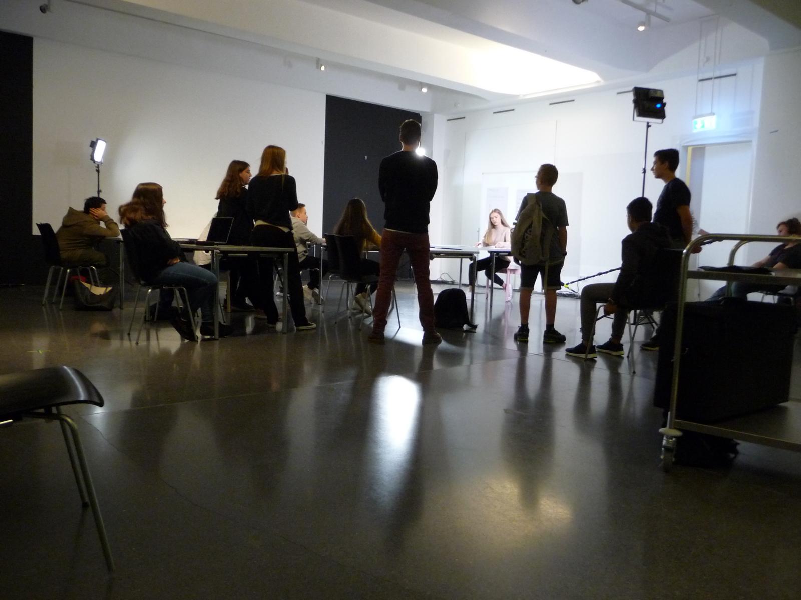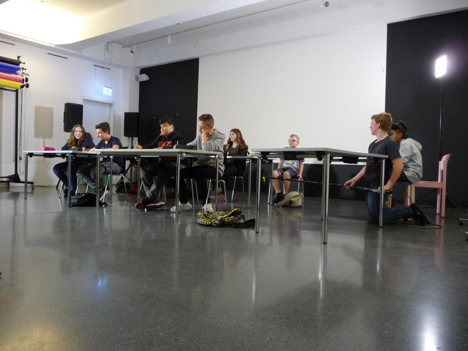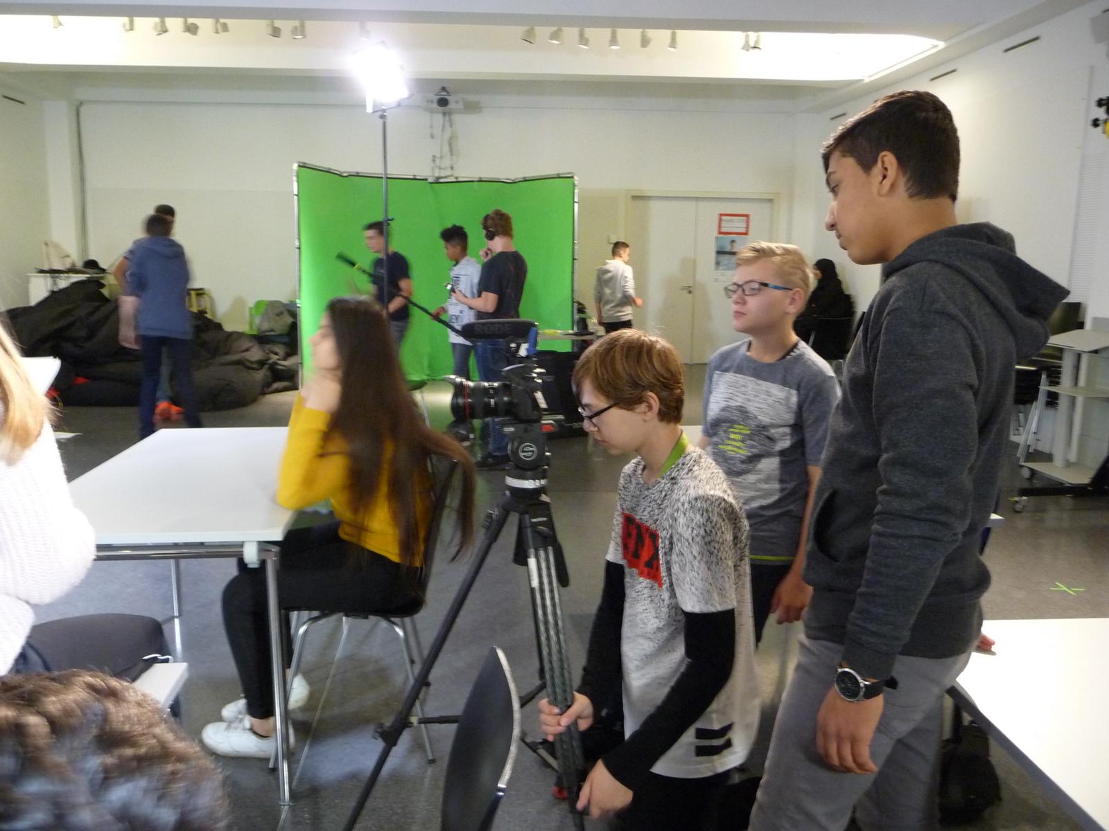 Das Kunst-Filmprojekt im Dortmunder U-Turm hat den Schüler/innen der Klasse 8b vieles abverlangt: es wurde Kreativität gefragt z. B. beim Schreiben eines eigenen Drehbuchs und Geschicklichkeit bei ersten Kamera- und Regisseurarbeiten. Nicht zuletzt konnten die Kinder ihre schauspielerischen Fähigkeiten ausprobieren, was vielen schon sehr gut gelungen ist. Wir können gespannt auf das Ergebnis der Arbeit sein, das am 27.11. im Kino des U-Turms präsentiert wird.
