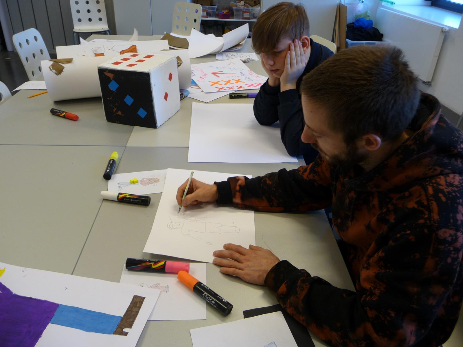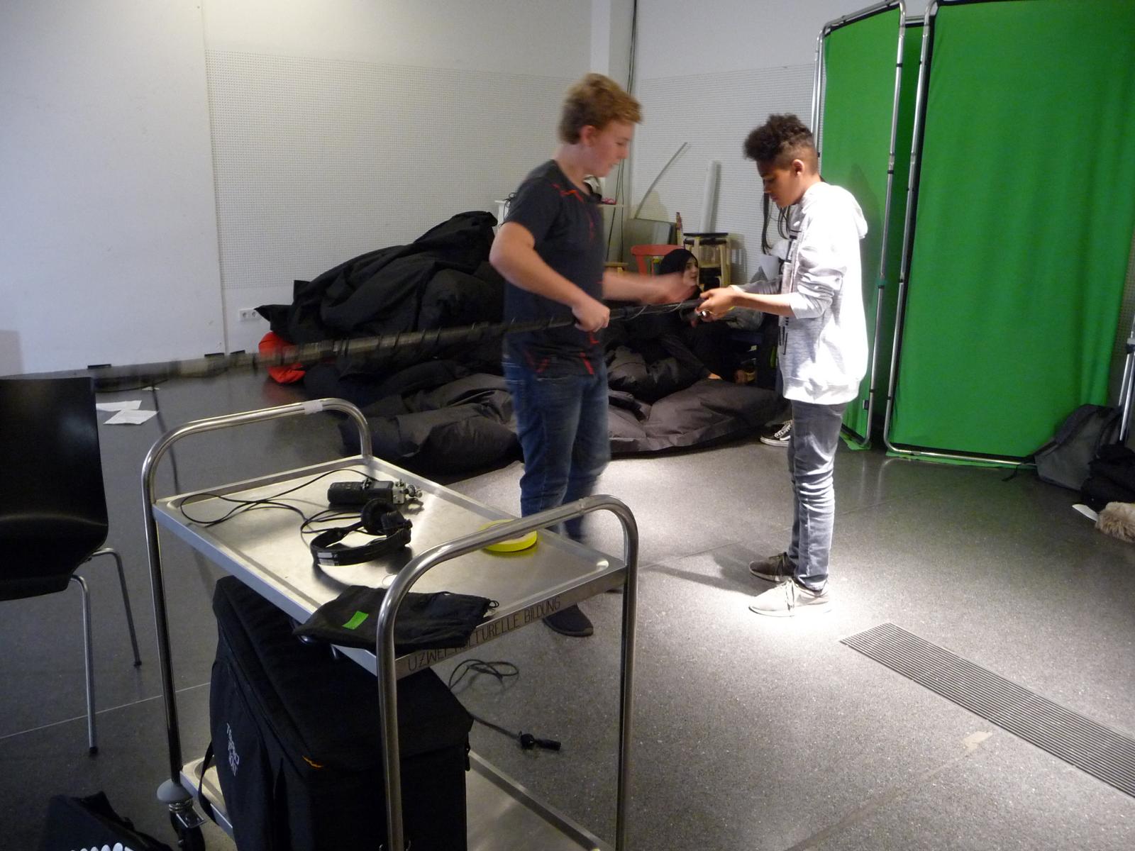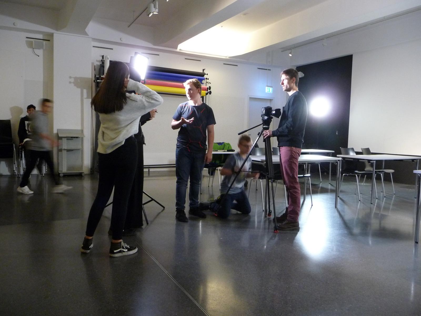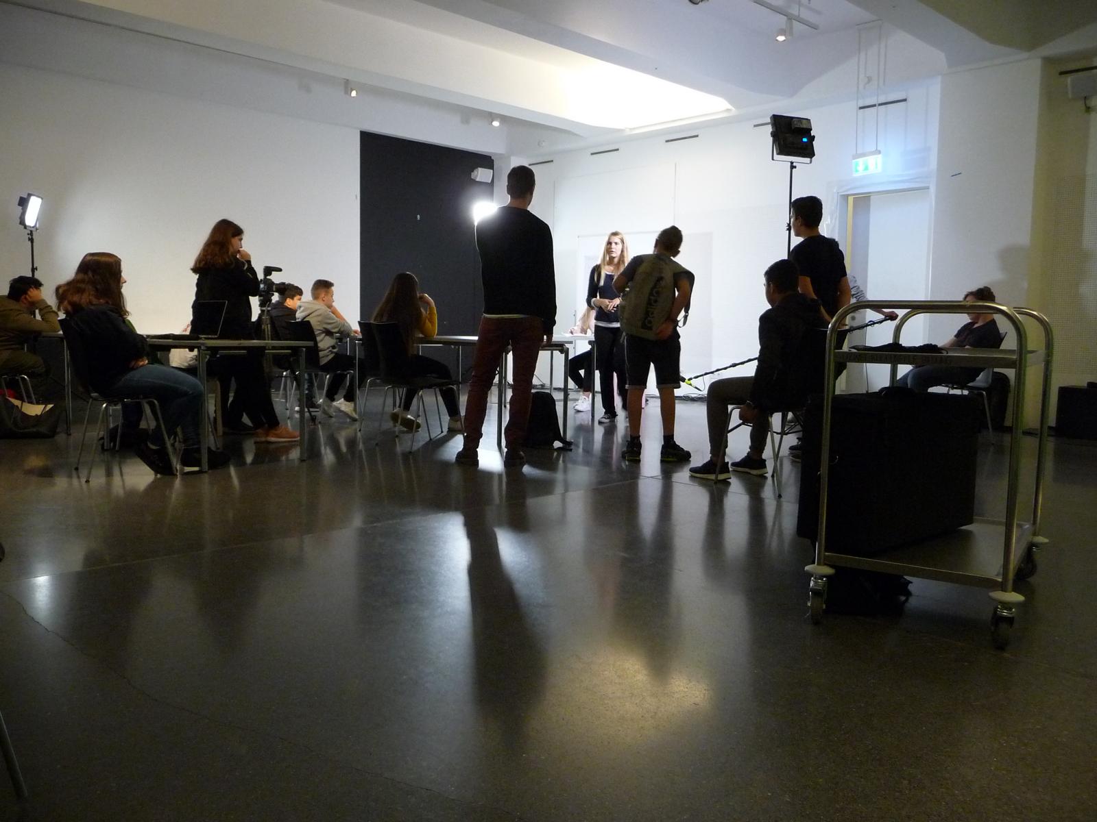 Das Kunst-Filmprojekt im Dortmunder U-Turm hat den Schüler/innen der Klasse 8b vieles abverlangt: es wurde Kreativität gefragt z. B. beim Schreiben eines eigenen Drehbuchs und Geschicklichkeit bei ersten Kamera- und Regisseurarbeiten. Nicht zuletzt konnten die Kinder ihre schauspielerischen Fähigkeiten ausprobieren, was vielen schon sehr gut gelungen ist. Wir können gespannt auf das Ergebnis der Arbeit sein, das am 27.11. im Kino des U-Turms präsentiert wird.