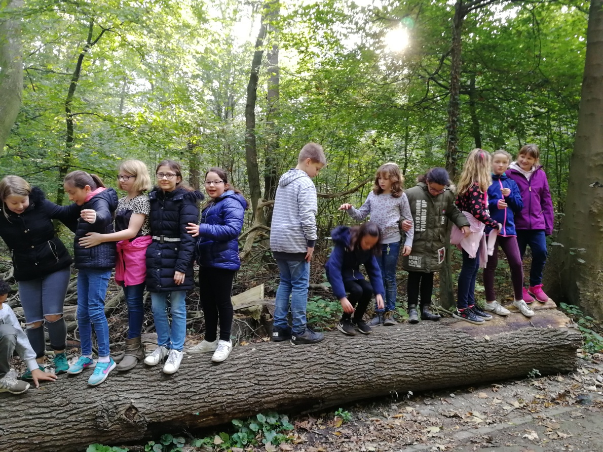 In einem ersten Modul starteten die Klassen 5a (am 8.10.), Klasse 5b (9.10.) und Klasse 5c (11.10.) mit ihrem Sozialtraining in dem Waldstück Bolmke. In kleinen Spielformen schärften die Klassen ihre Teamzugehörigkeit und ihre sozialen Kompetenzen. Sie lernten aufeinander acht zu nehmen und als Gruppe zu agieren. Ein Highlight stellte das Klettern in der Schlucht im Wald dar. Weitere Module werden voraussichtlich noch folgen.