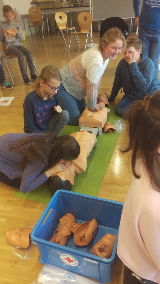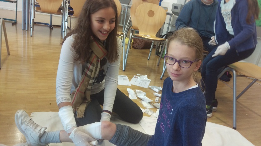 Am Montag, dem 5. November 2018 wurden die neuen Sporthelfer in Erster Hilfe von Frau Schepeler ausgebildet. Dabei lernten sie bestimmte Sportverletzungen wie Verrenkungen, Prellungen, Verstauchungen und Brüche voneinander zu unterscheiden und die richtige Erstversorgung zu veranlassen. Es wurden unter anderem die Rettungskette und Sofortmaßnahmen bei einem Unfall geübt und in Fallbeispielen ausprobiert. Verbände anlegen ist nun kein Problem mehr, wie auch Beatmung eines Bewusstlosen und das Lagern in der stabilen Seitenlage. Unsere Ersthelfer sind nun fit in Erster Hilfe und werden als Sporthelfer bei Sportveranstaltungen der Robert-Koch-Realschule im Dienst sein.