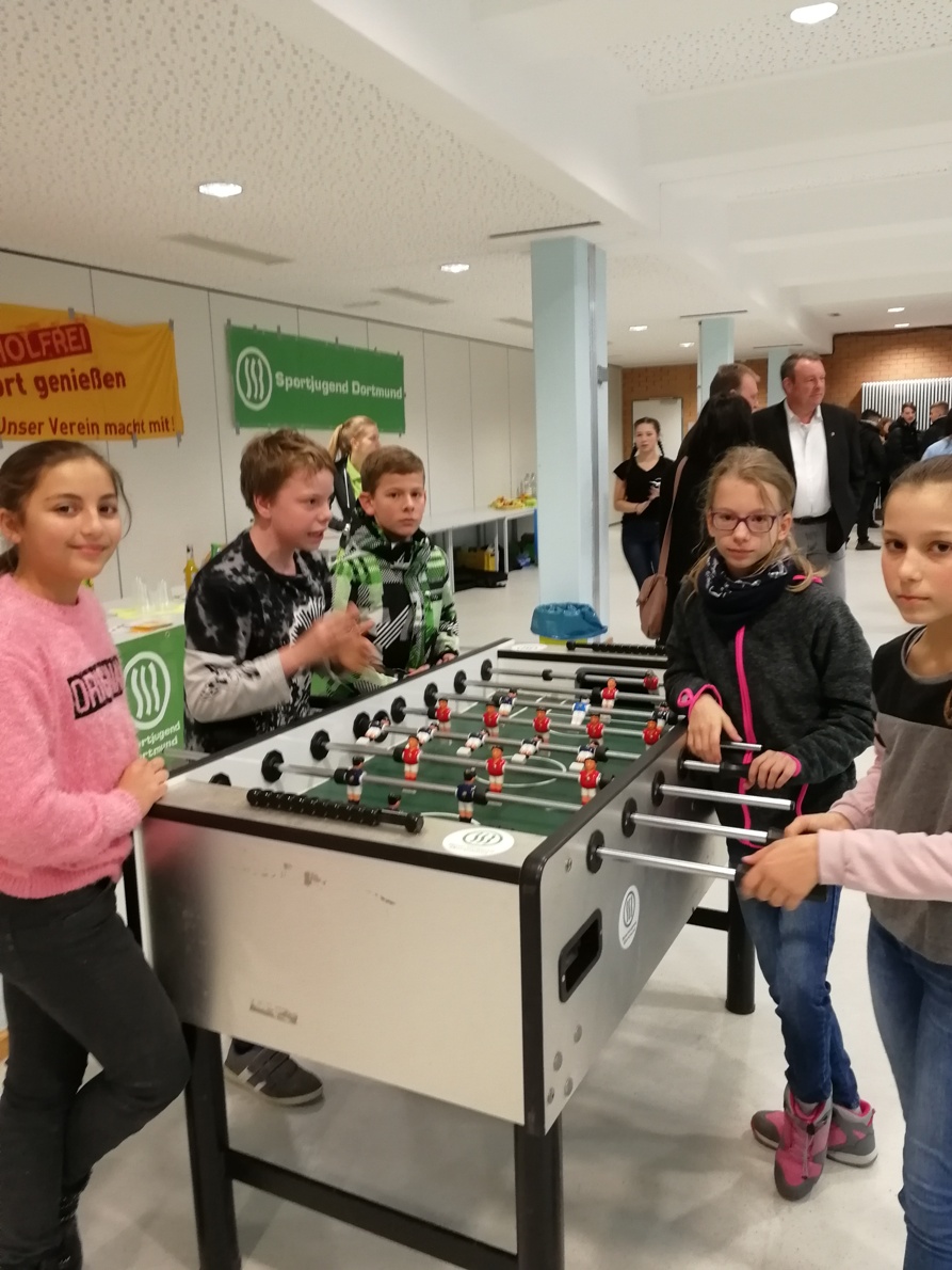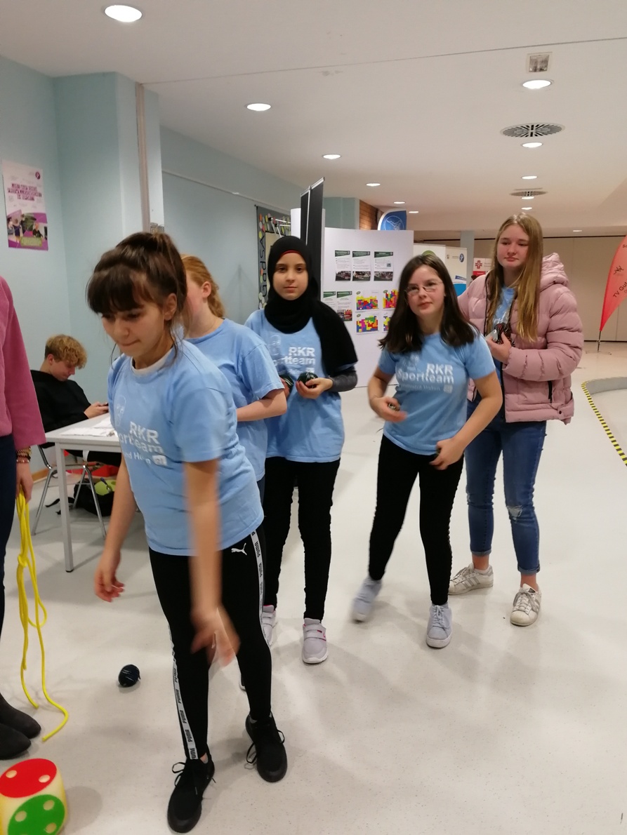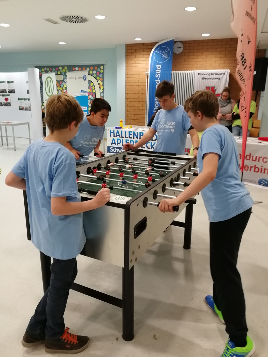 Am 23.11.2018 machten sich die Sporthelfer aus den Klassen 7 und 8 auf den Weg zum Sporthelferforum nach Aplerbeck zu den Sportstätten an der Schweizer Allee. Dort lernten Emilia (7a), Sibel (7a), Celine (7a), Tom (7a), Lukas P. (7b), Leon (7b), Noah (7b), Aylin (7c), Aimee (7c), Lisa H. (7c), Maja (7c), Fatima (7c), Magnus (7c), Fynn (8a), Akif (8a), Lukas N. (8a) und Michelle (8c) die anderen Sporthelfer der Emscherschule, dem Käthe-Kollwitz Gymnasium, dem Leibnitz Gymnasium und der Martin-Luther-King-Gesamtschule kennen. In gemeinsamen sportlichen Workshops wie Le Parkour, Minitrampolin, Bubble Soccer, Spiele im Wasser, Aquafitness, Ultimate Frisbee, Low-T-Ball und der Unfallprävention arbeiteten unsere Schülerinnen und Schüler in Teams und sie erweiterten ihre Bewegungserfahrungen. Auch für einen Snack für Zwischendurch wurde gesorgt. Es war ein ereignisreicher und sportlicher Tag, der uns sehr viel Freude bereitet hat.