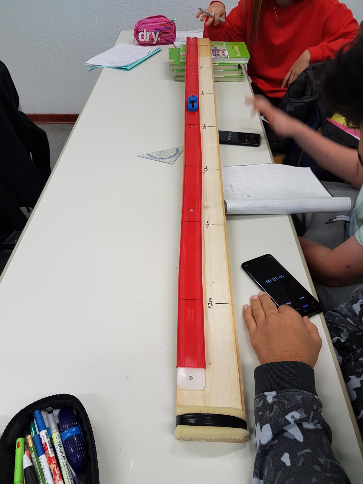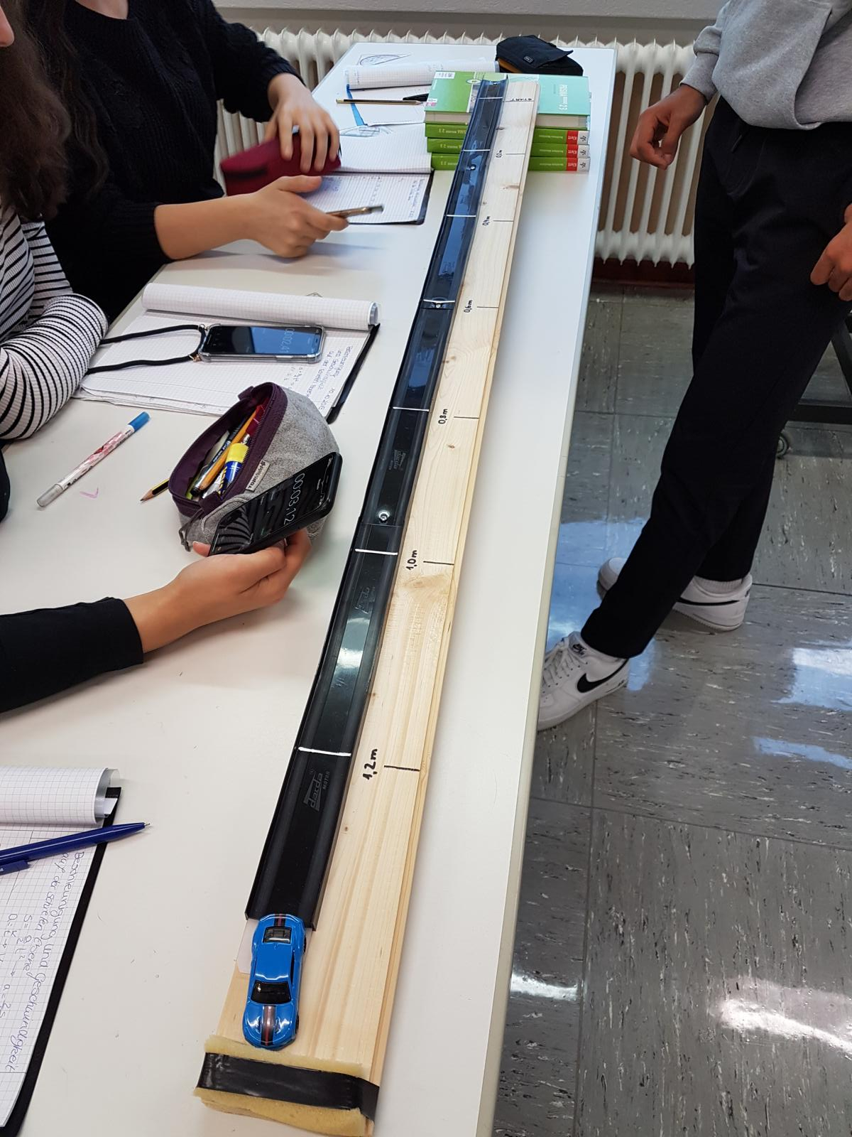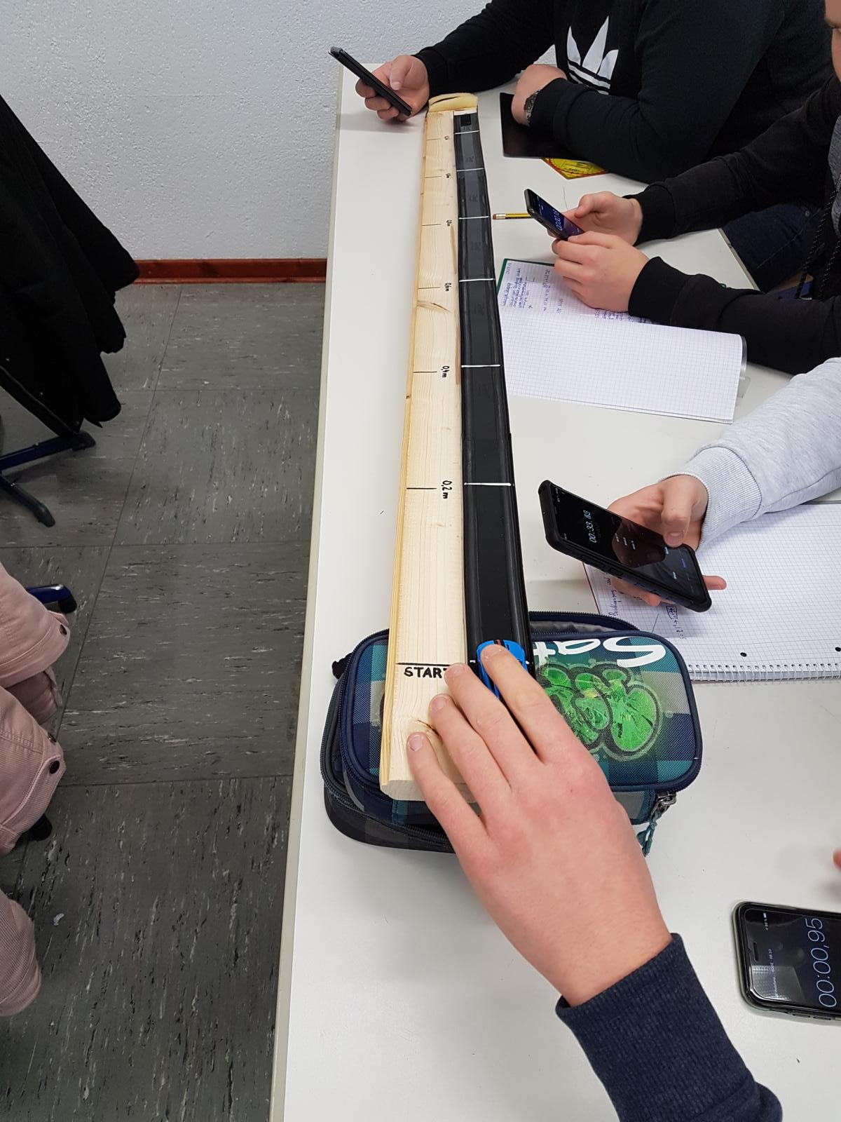 In den vergangenen Wochen haben die 10. Klassen im Physikunterricht die selbst gebauten schiefen Ebenen eingeweiht, die dazu dienen, die physikalischen Größen Beschleunigung und Geschwindigkeit im Versuch zu ermitteln. Die Schülerinnen und Schüler hatten bei der Nutzung des Materials viel Spaß!