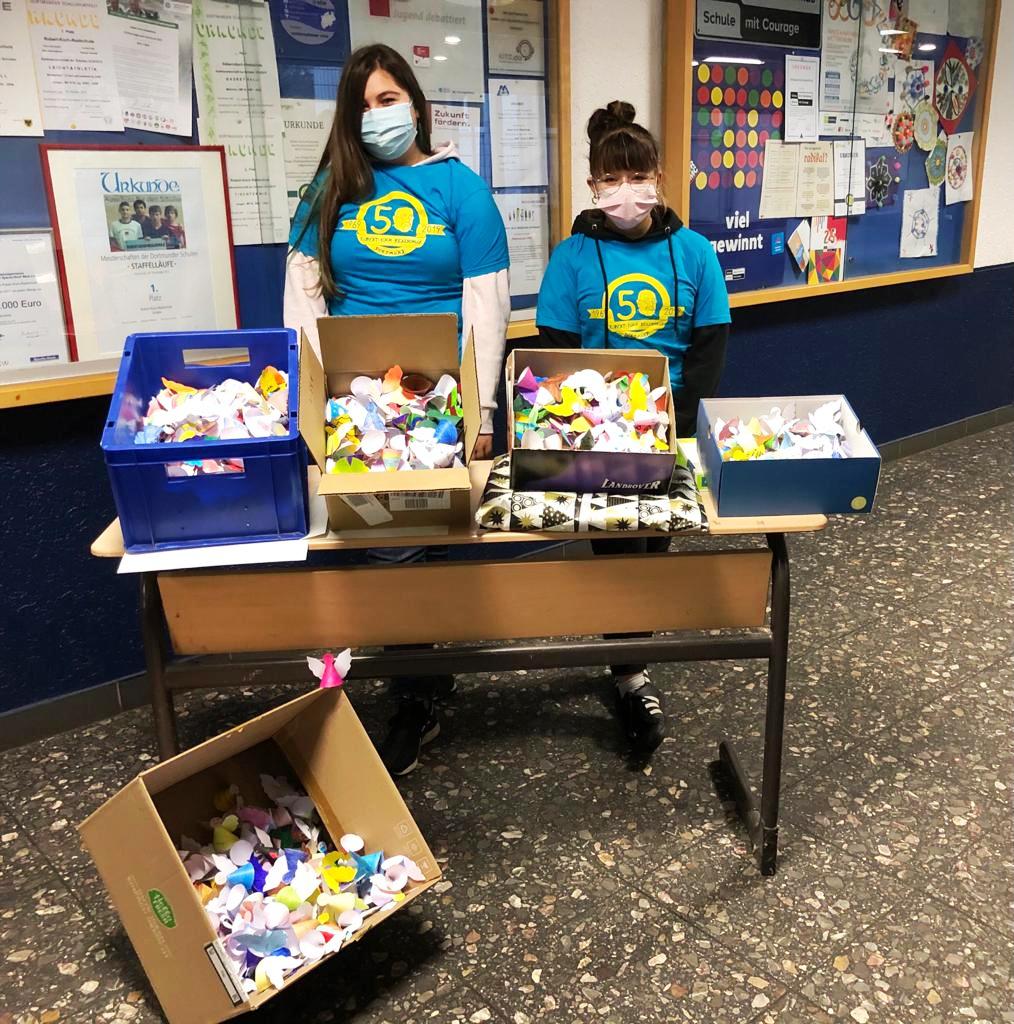 Alle Schülerinnen und Schüler der Robert-Koch-Realschule wollten Seniorinnen und Senioren in der schweren Coronazeit eine Freude zum Advent bereiten. 1000 Engelchen wurden gebastelt, weihnachtlich bemalt und mit einem Gruß und Wunsch versehen, um den Seniorinnen und Senioren Trost zu spenden. Am Donnerstag (03.12.) und Freitag (04.12.) wurden diese Engelchen von unseren Schülerinnen und Schülern aus der Ehrenamt-AG an das Minna-Sattler-Seniorenzentrum sowie das Seniorenheimen Hermann-Keiner-Haus und die Caritas Dortmund verteilt. Die Schülerinnen und Schüler hatten eine Menge Spaß beim Basteln und die Engelchen haben den Seniorinnen und Senioren eine große Freude gebracht.