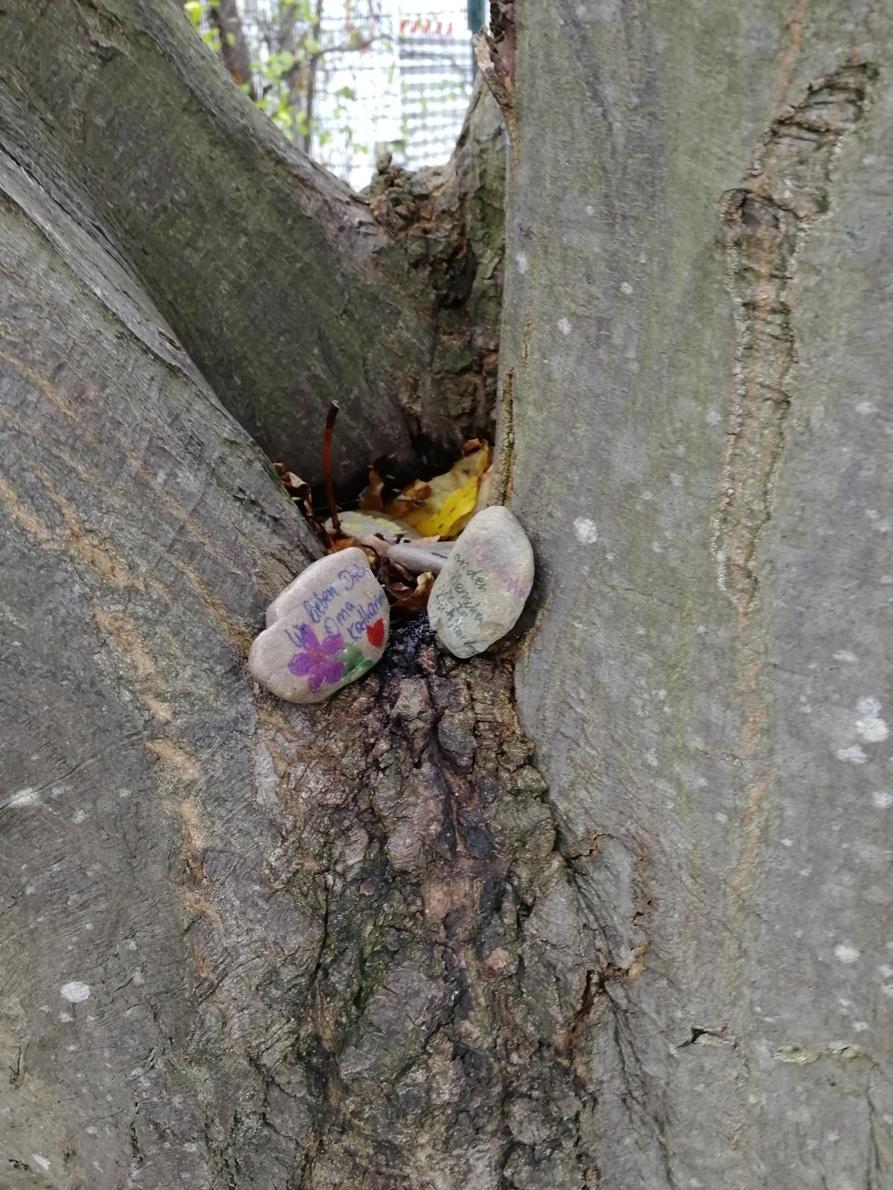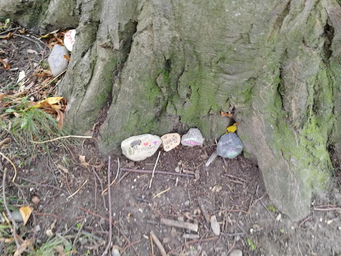 Zum christlichen Feiertag „Allerheiligen“ gedenkt der katholische Religionskurs an die verstorbenen Menschen der Schülerinnen und Schüler. Gemeinsam bemalten sie Steine, legten diese auf dem