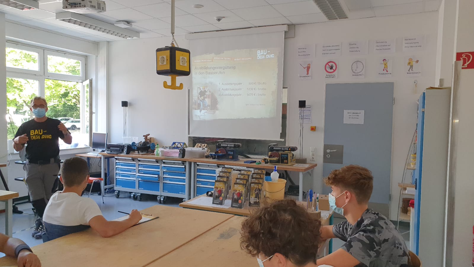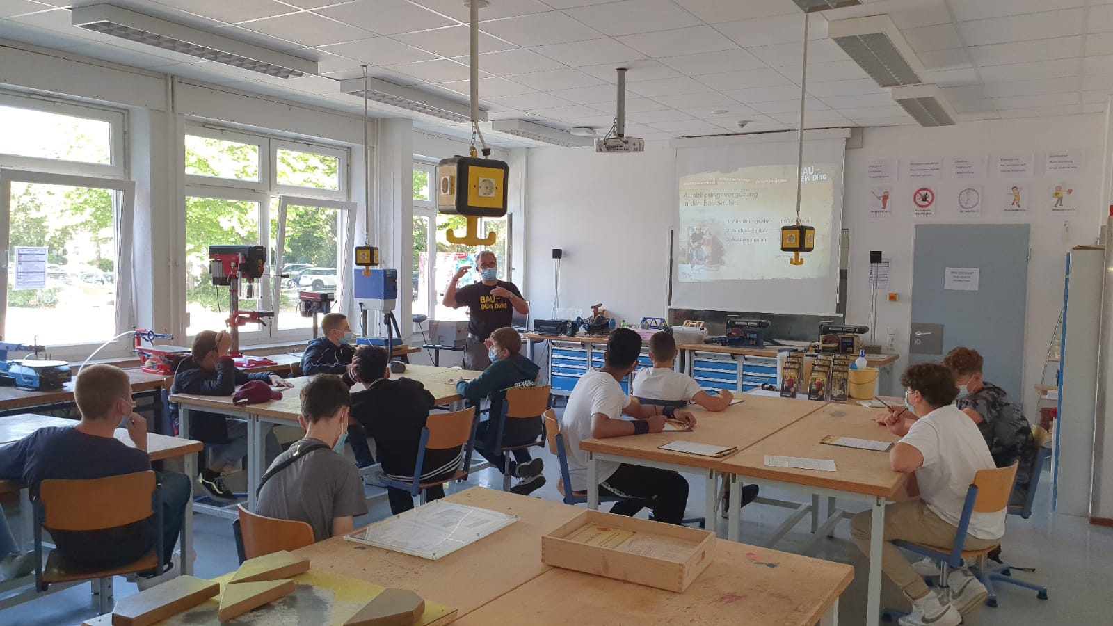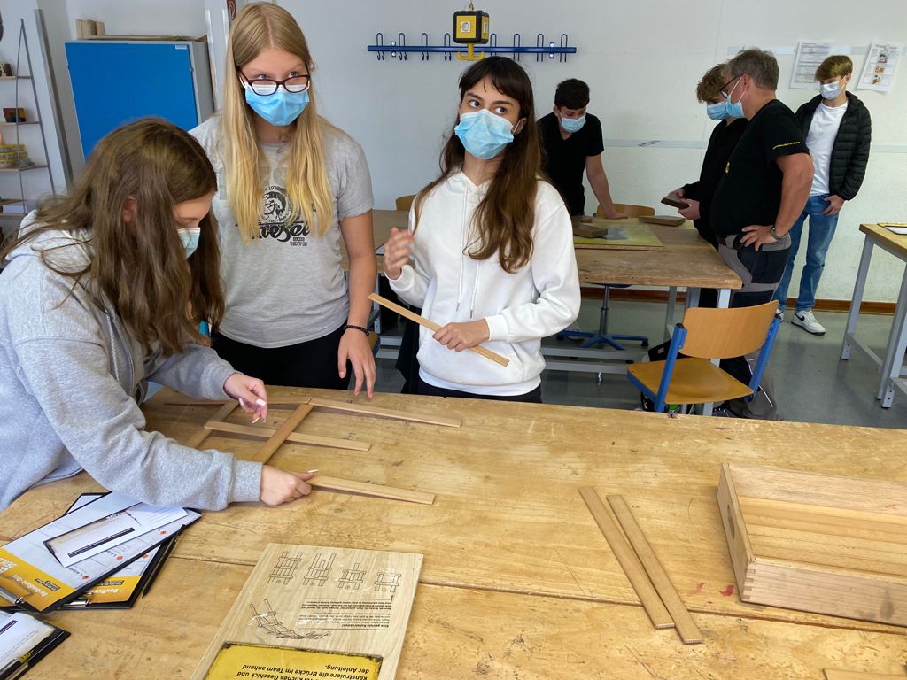 Zum wiederholten Mal hat der BauBus vom 25.08. bis zum 27.08.2021 Station an der RKR gemacht, um die Schülerinnen und Schüler des 9. Jahrgangs sowie den Technikkurs 10 über Ausbildungsberufe im Bauwesen zu informieren und das Interesse dafür zu wecken. Anders als in den vorangegangenen Jahren werden aktuell die Stationen in einem Unterrichtsraum aufgebaut, um notwendige Abstände einhalten zu können: