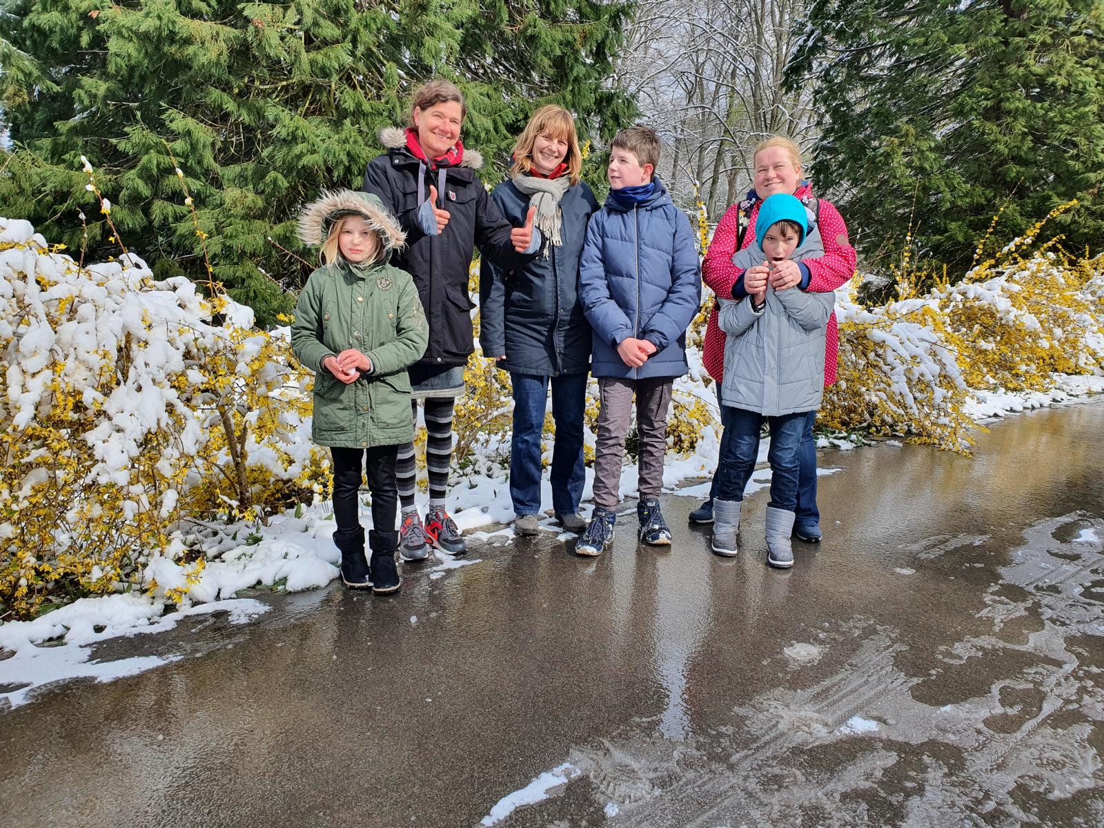 in der Schule, um sich dann gut gestärkt auf den Weg durch die weiße Pracht zu machen. Schon lange haben wir uns nicht mehr so viele Schneebälle um die Ohren gepfeffert, gegenseitig "eingeseift"