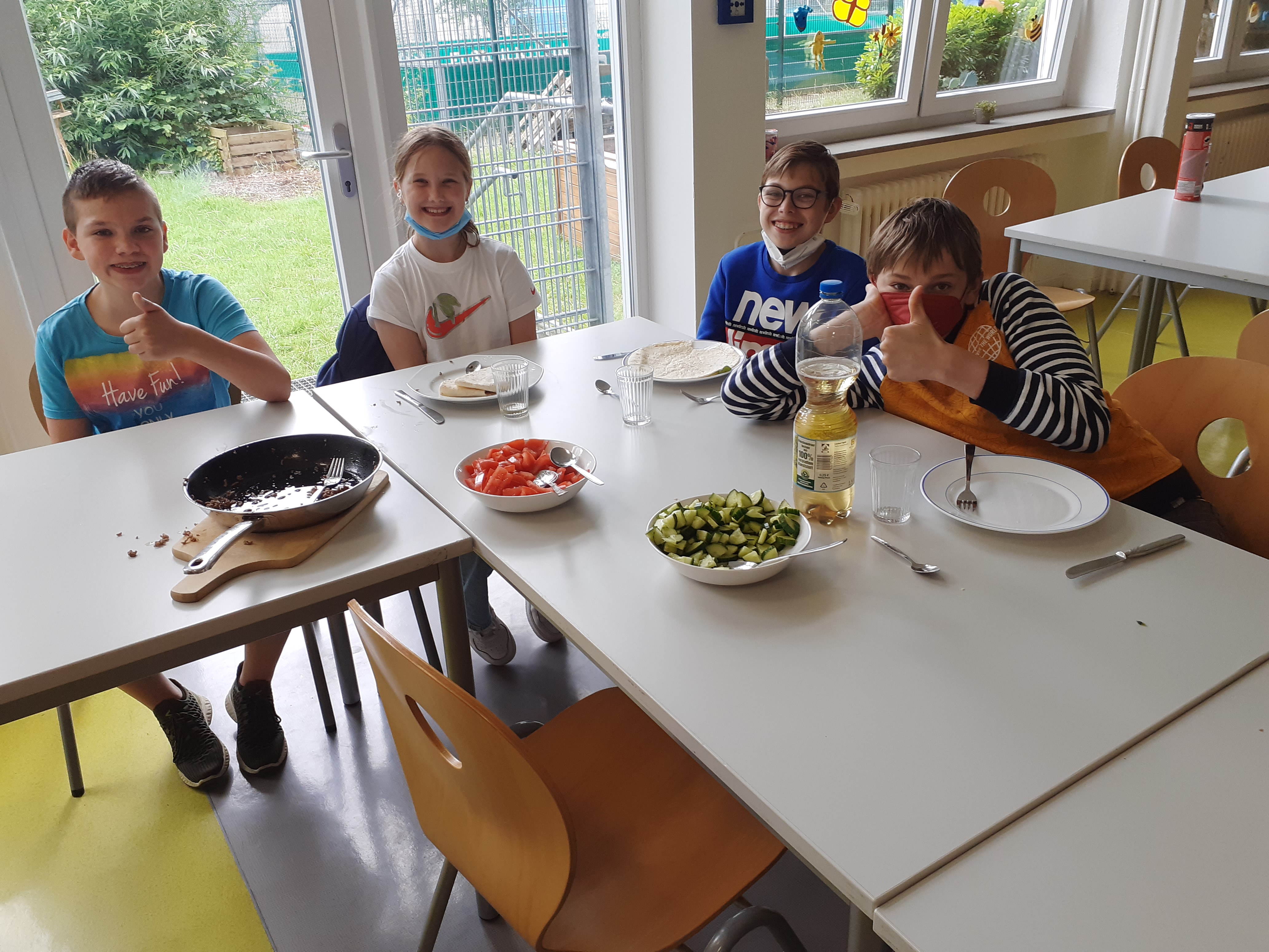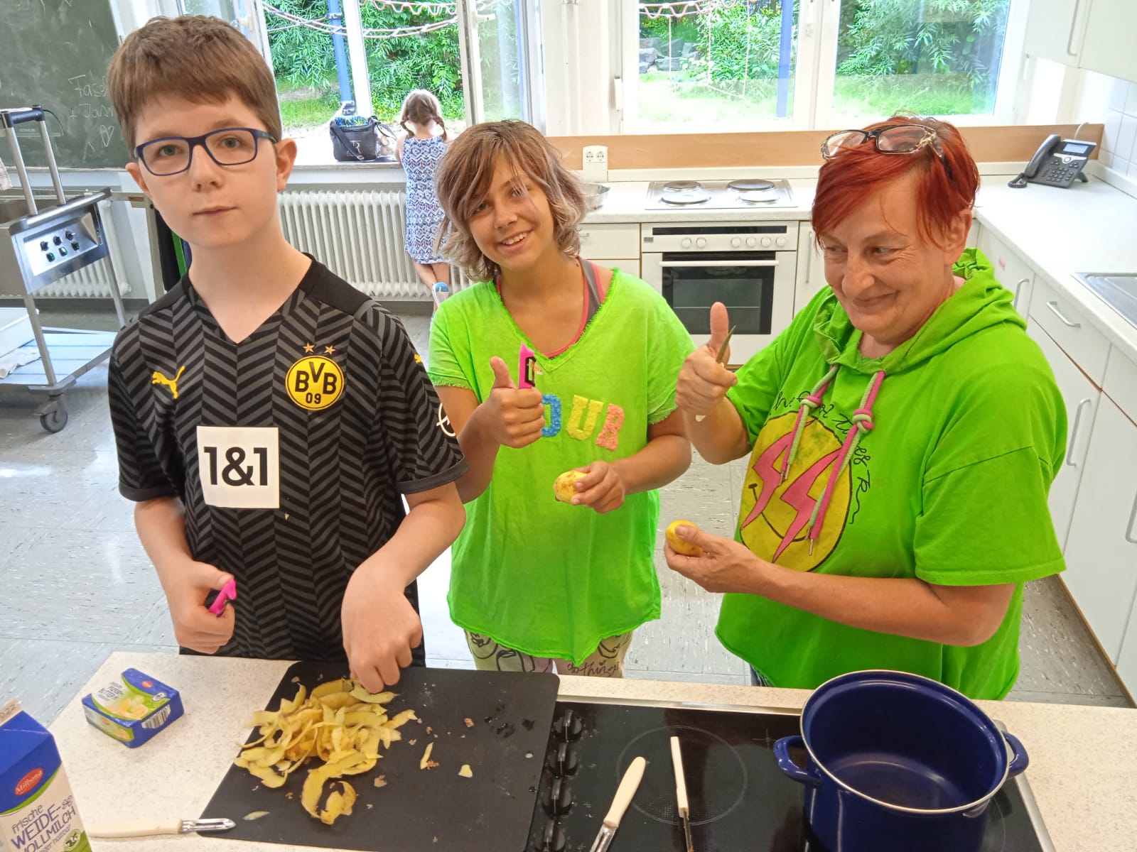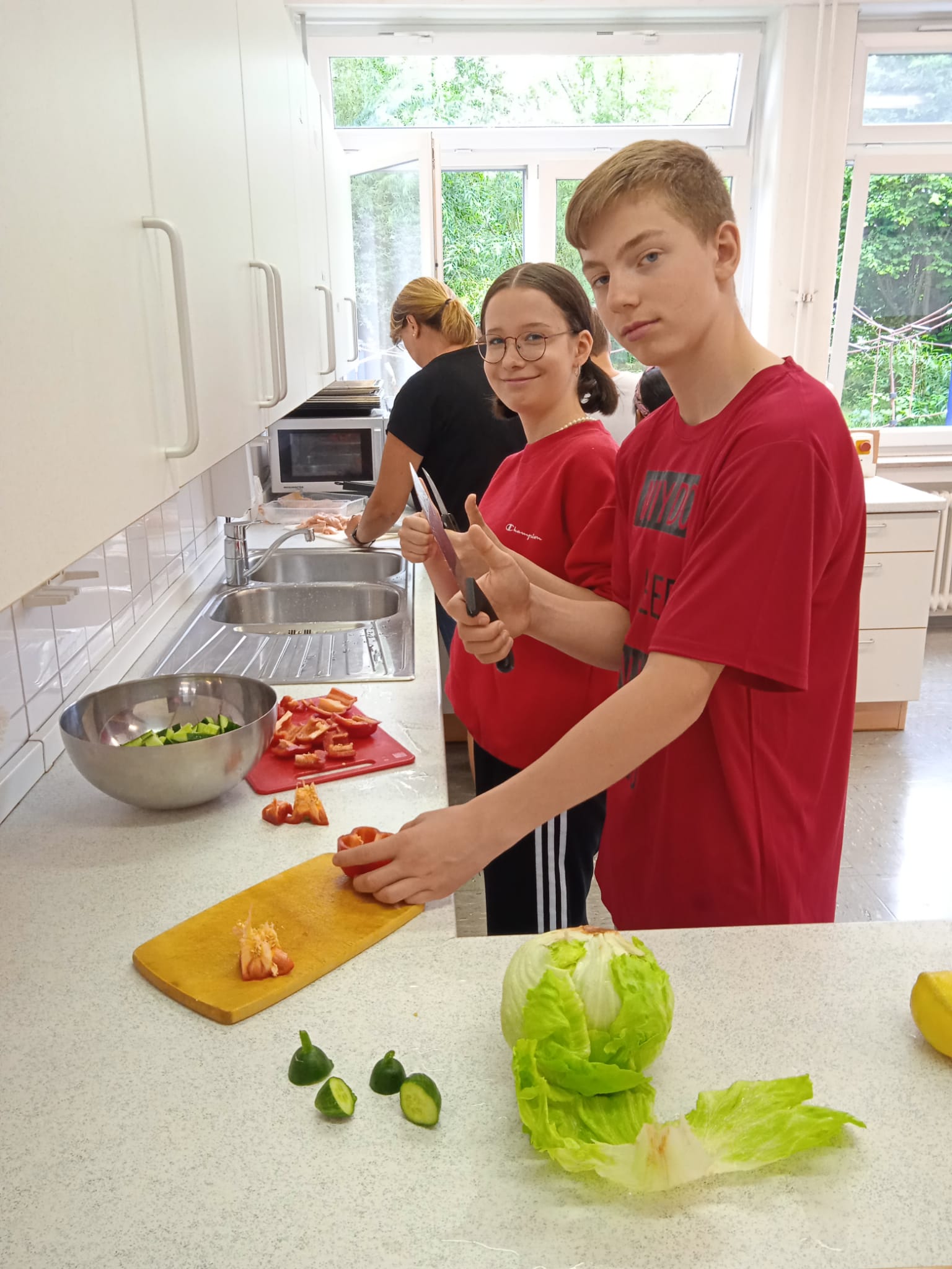In der ersten Ferienwoche wurde wieder der Kochlöffel geschwungen und eine Menge leckere Gerichte in unserer Schulküche gezaubert! Let´s cook am letzten Tag auch mit Familienangehörigen -
