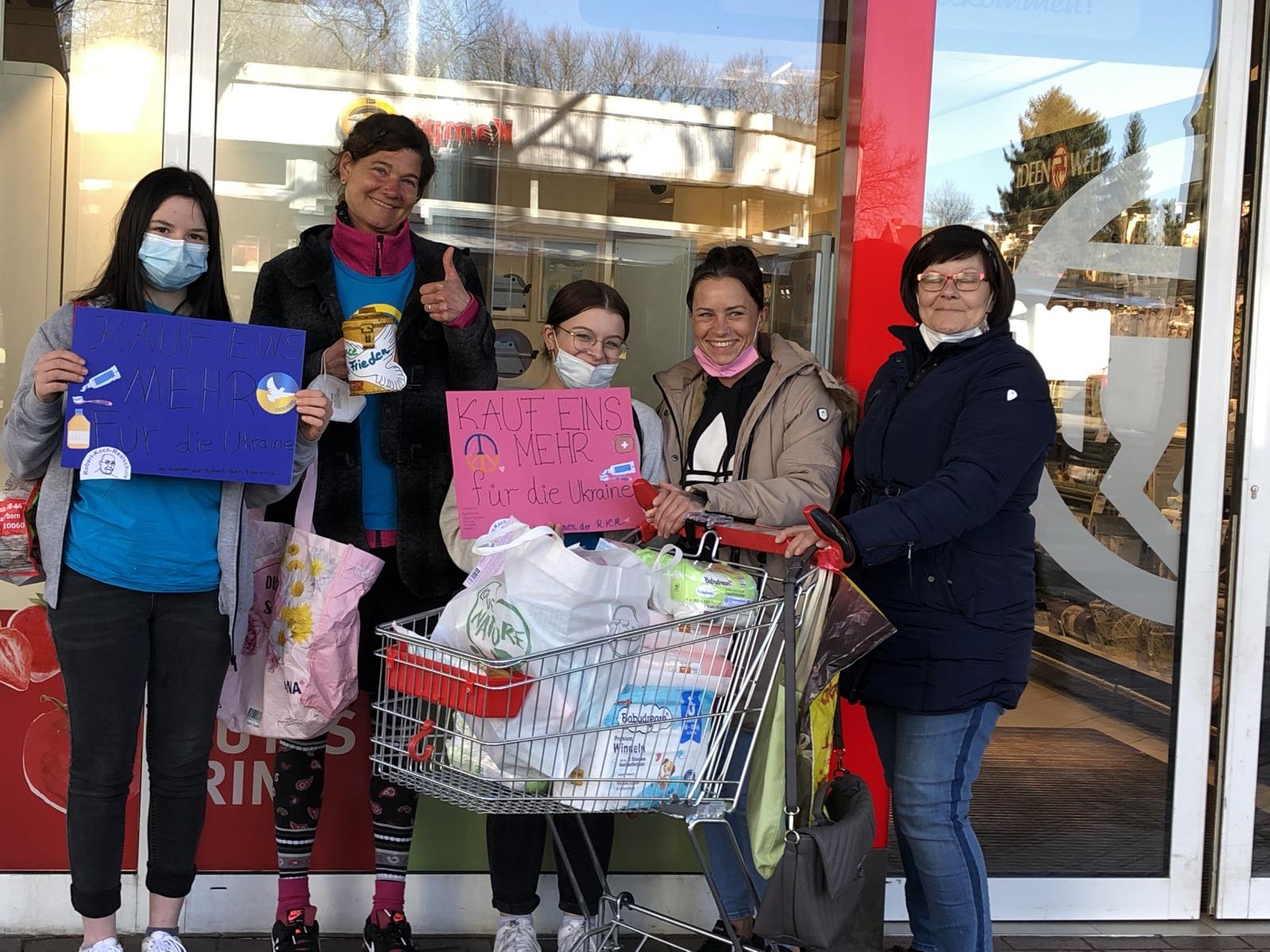 Unter diesem Motto wurde vor verschiedenen Drogeriemärkten Hygieneartikel für die Opfer und Flüchtlinge des Ukraine-Krieges gesammelt. Neben dem Einkaufswagen voller Spenden kamen auch so einige Münzen in der Spendendose zusammen. Das Team von Sozial genial dankt ganz herzlich! Die Artikel sind bereits in Kisten verpackt und werden heute zur Sammelstelle von "Grenzenlose Wärme" zur Westfalenhalle gebracht.