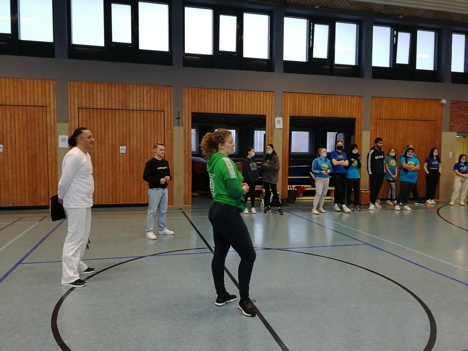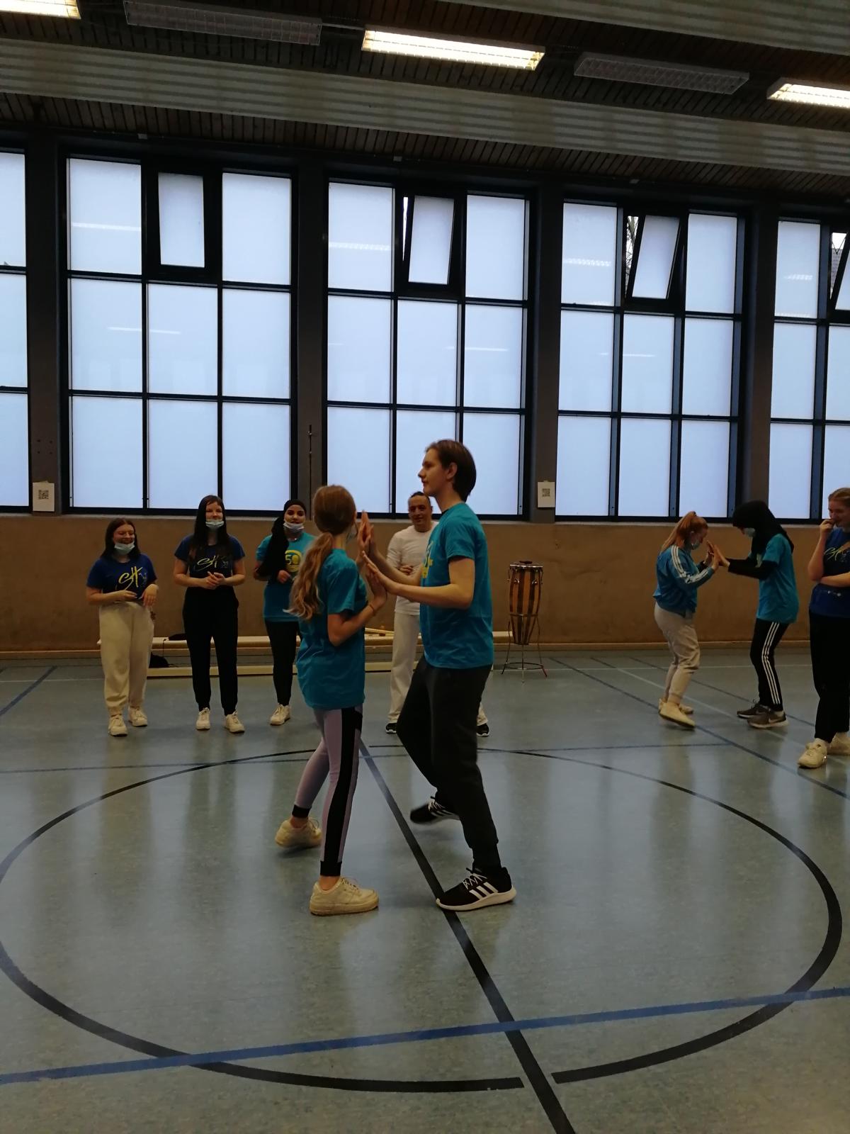 Am 16.12.21 fand unter Coronabedingungen das Sporthelferforum im Heinrich-Schmitz-Bildungszentrum in Dortmund in Kooperation mit dem Stadtsportbund Dortmund statt. 23 Sporthelferinnen und Sporthelfer hatten eine Menge Spaß, Tanzschritte im Salsa, Bachata und Merengue kennen zu lernen. Rhythmus im Blut war an diesem Tag Voraussetzung. Besonders viel Spaß hatten die Schülerinnen und Schüler die Geschichte des Capoeras kennen zu lernen und selber den Sport auszuprobieren. Wir freuen uns schon auf das nächste Sporthelferforum.