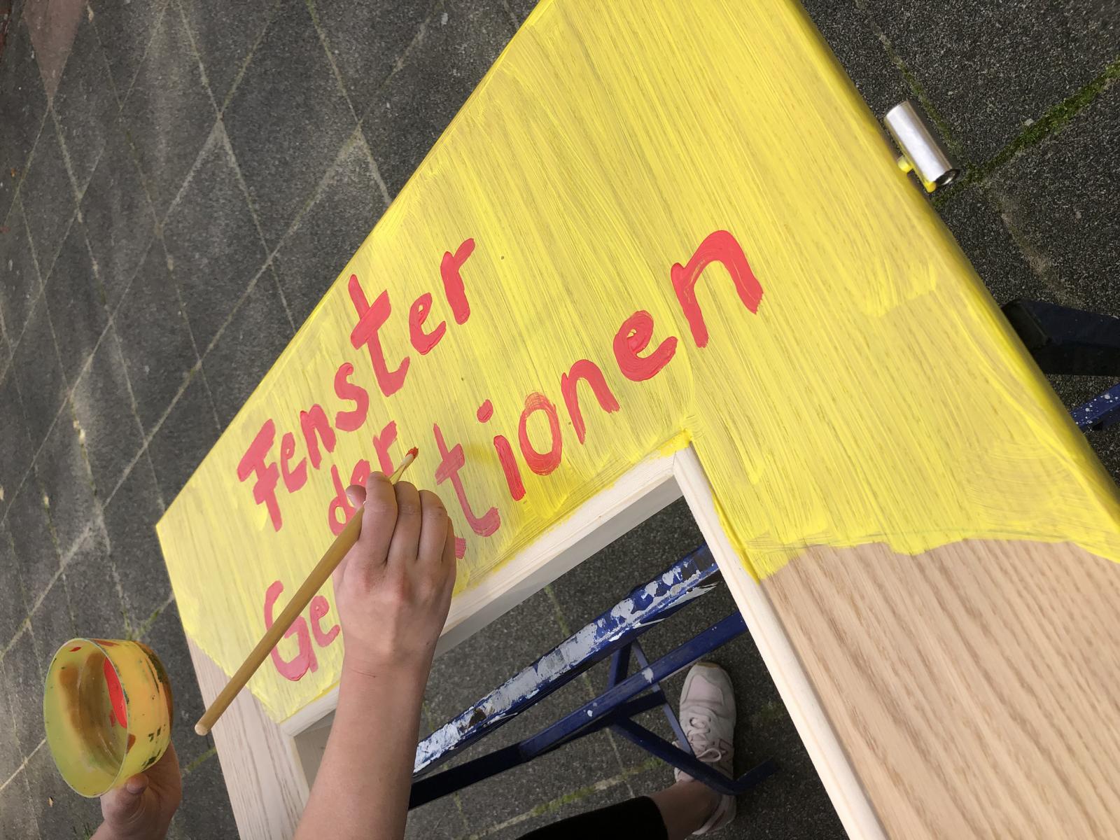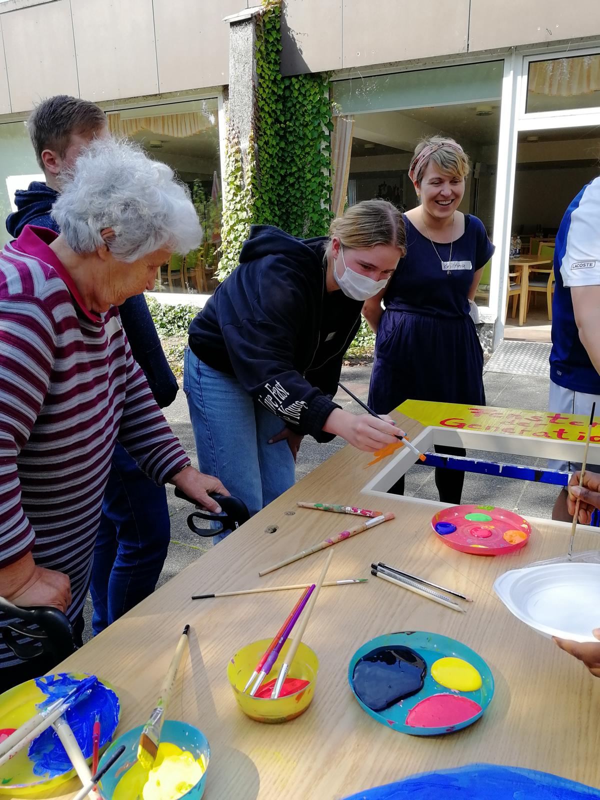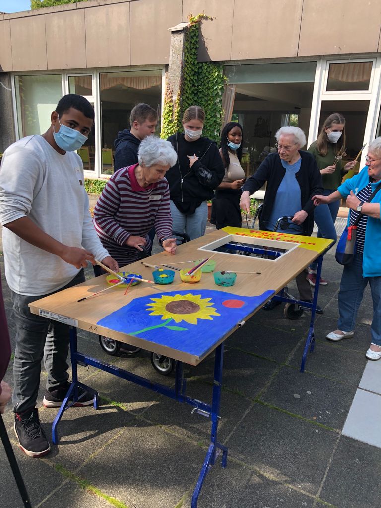 Schülerinnen und Schüler der RKR bemalen in Kooperation mit der Youngcaritas Dortmund und den Seniorinnen und Senioren des Minna-Sattler-Seniorenzentrum das Fenster der Generationen. Die Schülerinnen und Schüler und Ehrenamtlichen sammelten mit den Seniorinnen und Senioren Gemeinsamkeiten und bemalen gemeinsam eine Tür. Die Tür soll ein Denkmal für die Generationen darstellen, die am Minna-Sattler-Seniorenzentrum aufgestellt werden soll.
