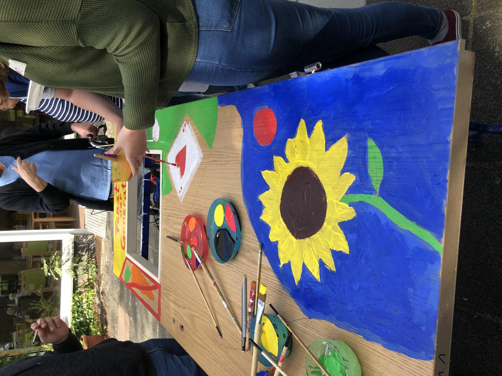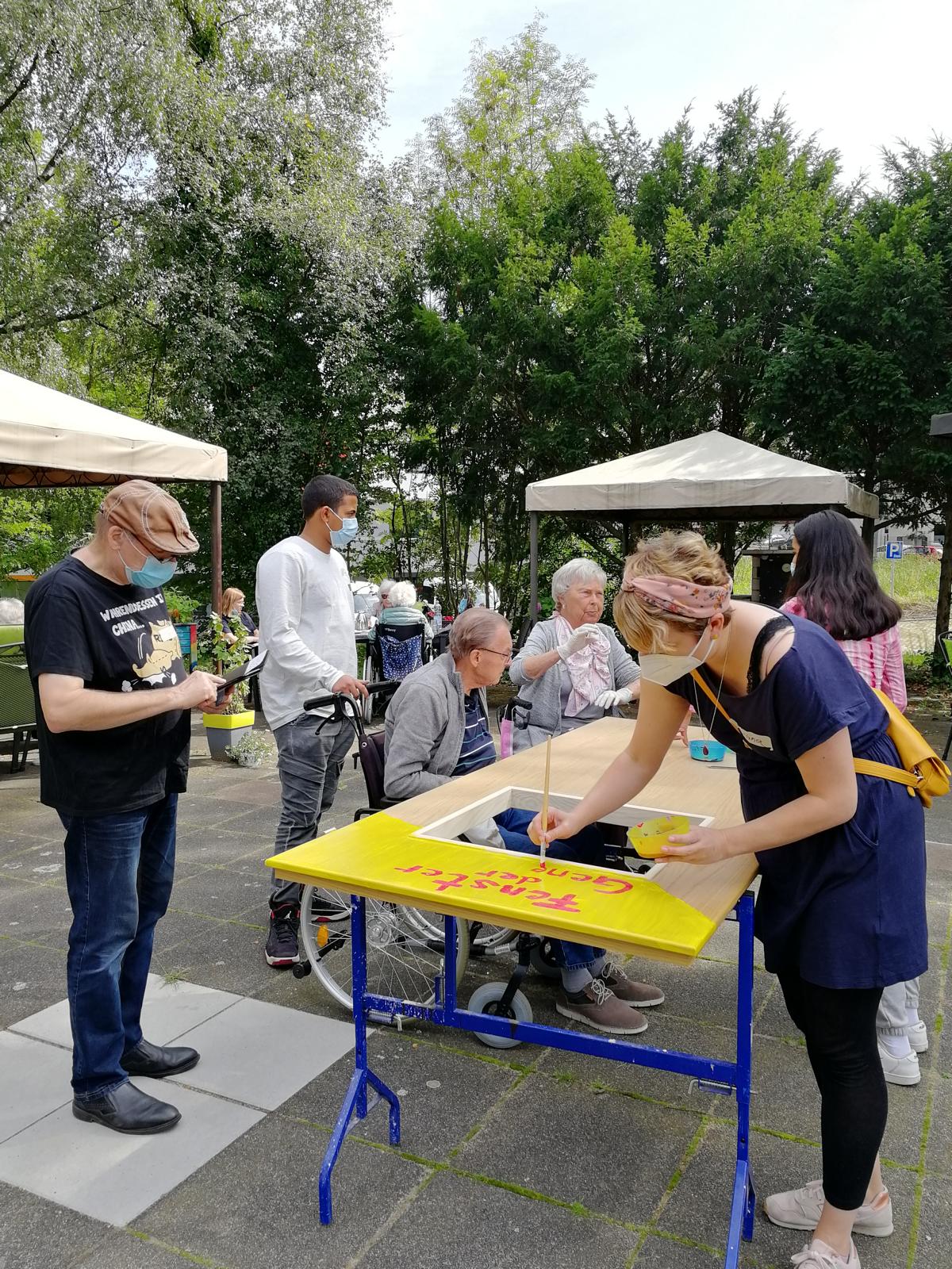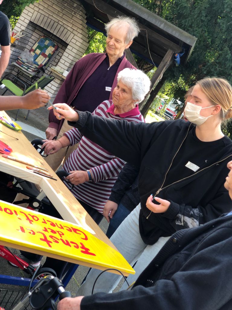 Schülerinnen und Schüler der RKR bemalen in Kooperation mit der Youngcaritas Dortmund und den Seniorinnen und Senioren des Minna-Sattler-Seniorenzentrum das Fenster der Generationen. Die Schülerinnen und Schüler und Ehrenamtlichen sammelten mit den Seniorinnen und Senioren Gemeinsamkeiten und bemalen gemeinsam eine Tür. Die Tür soll ein Denkmal für die Generationen darstellen, die am Minna-Sattler-Seniorenzentrum aufgestellt werden soll.