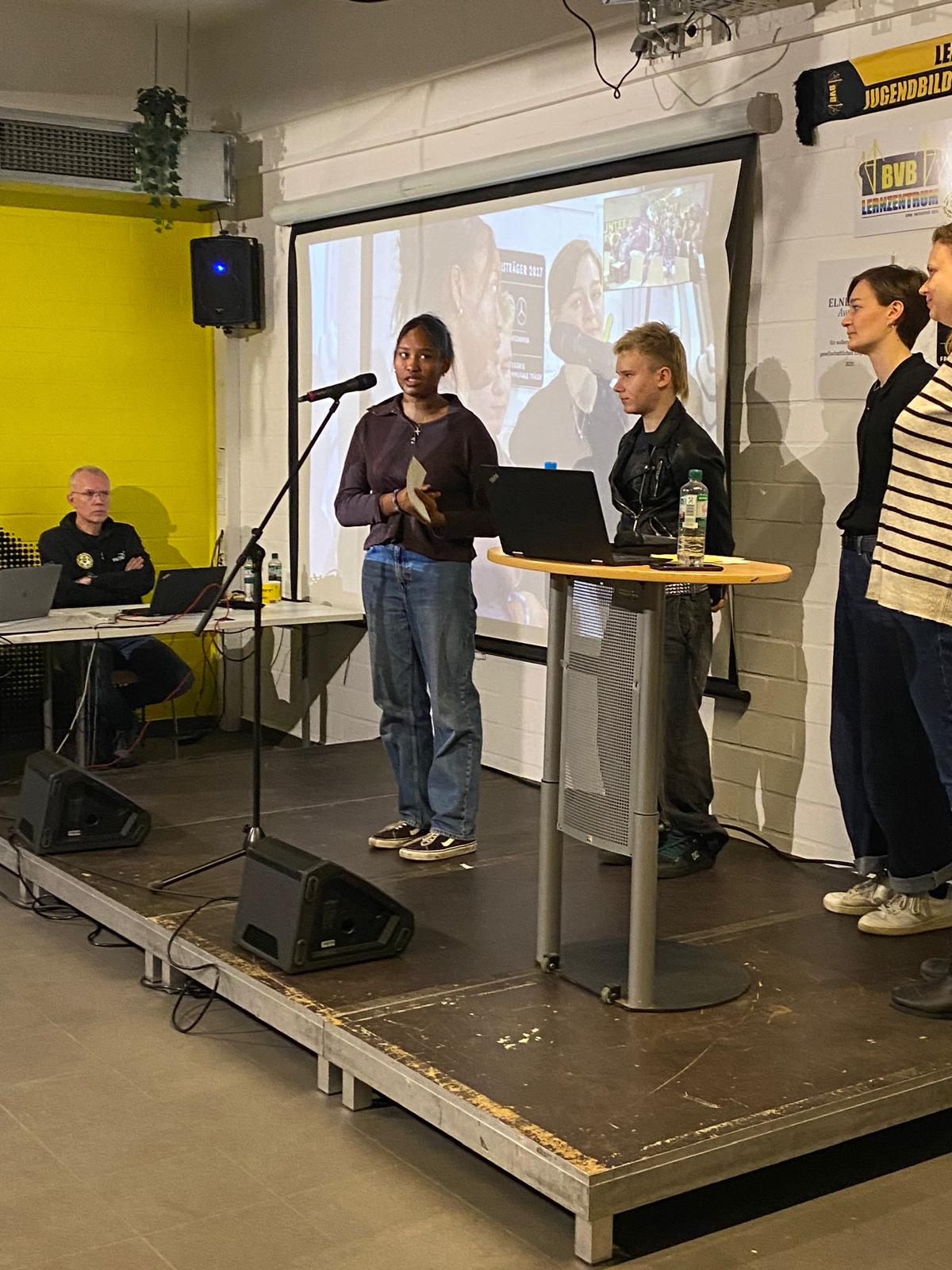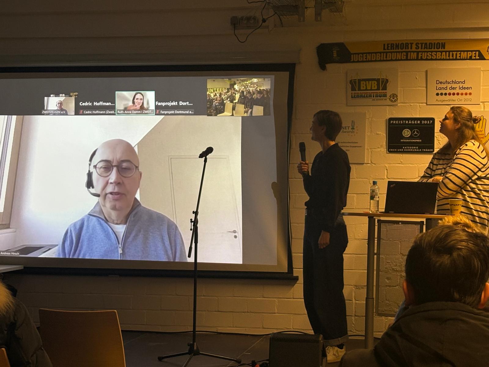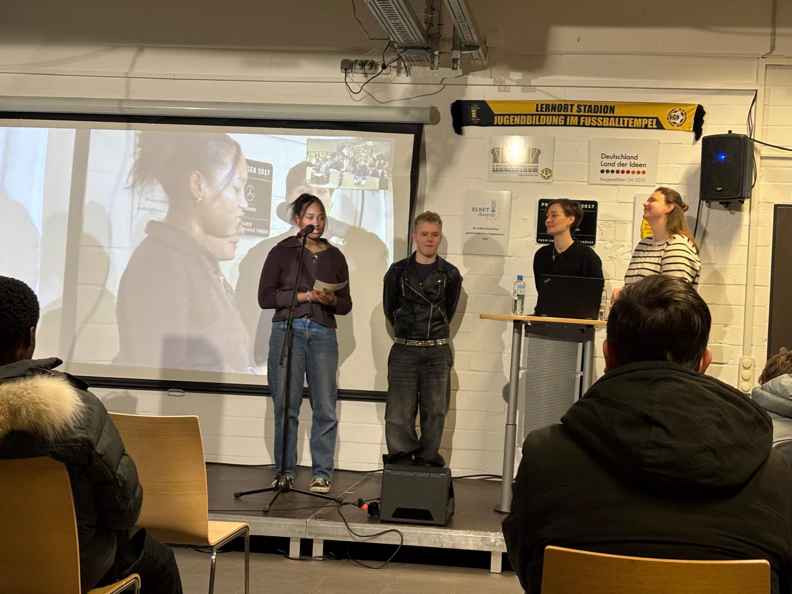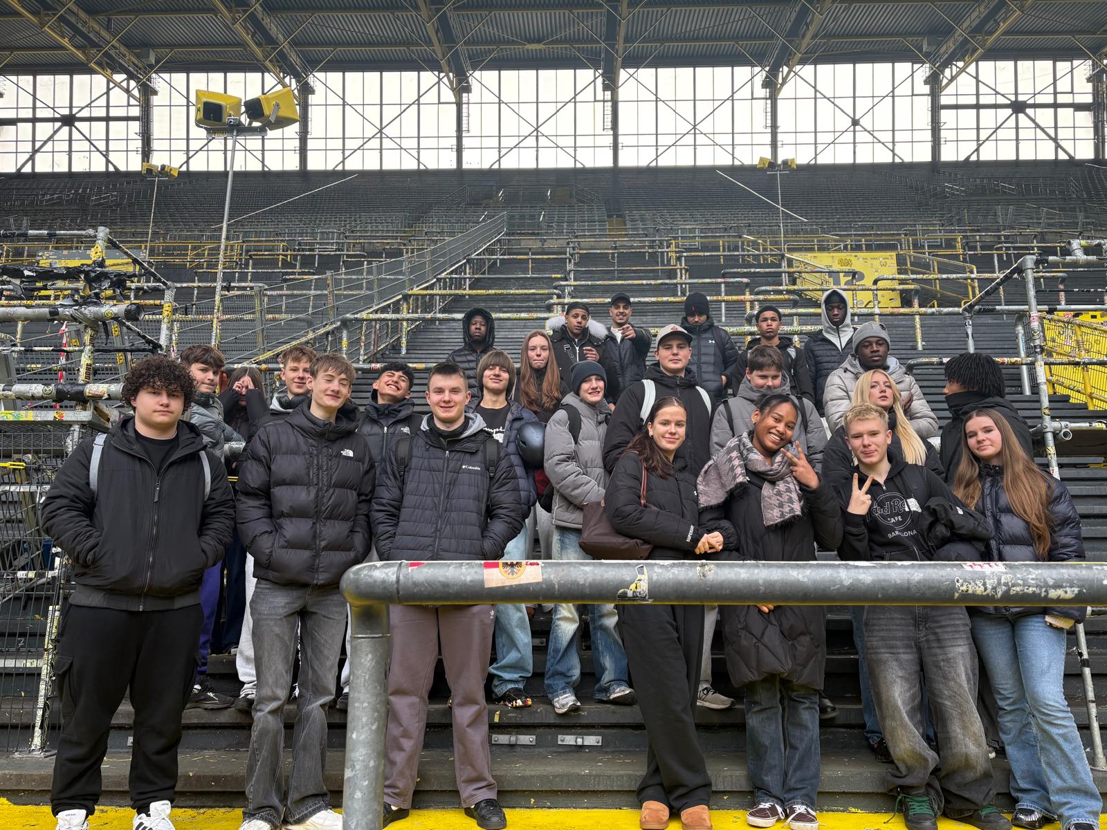 Die Klasse 9a war am Mittwoch und am Freitag im Rahmen von „Fußball, Erinnerung, Verantwortung: Ein Workshop- und Begegnungsprojekt zur Geschichte der Familie Hirsch“ im BVB-Lernzentrum zu Gast, um Zweitzeugen:innen von Julius Hirsch, Nationalspieler und von den Nationalsozialisten verfolgter und im KZ ums Leben gekommener Jude aus Karlsruhe, zu werden.