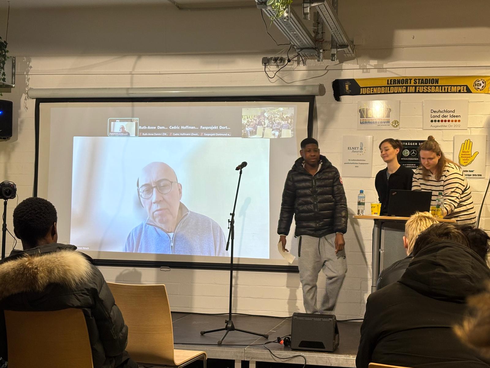 Am Freitag durften wir seinen Enkel Andreas Hirsch erleben, der von seinem Großvater berichtete. Er rief die Schüler:innen dazu auf, zu lesen, denn wer gebildet sei, könne kein Nazi werden.