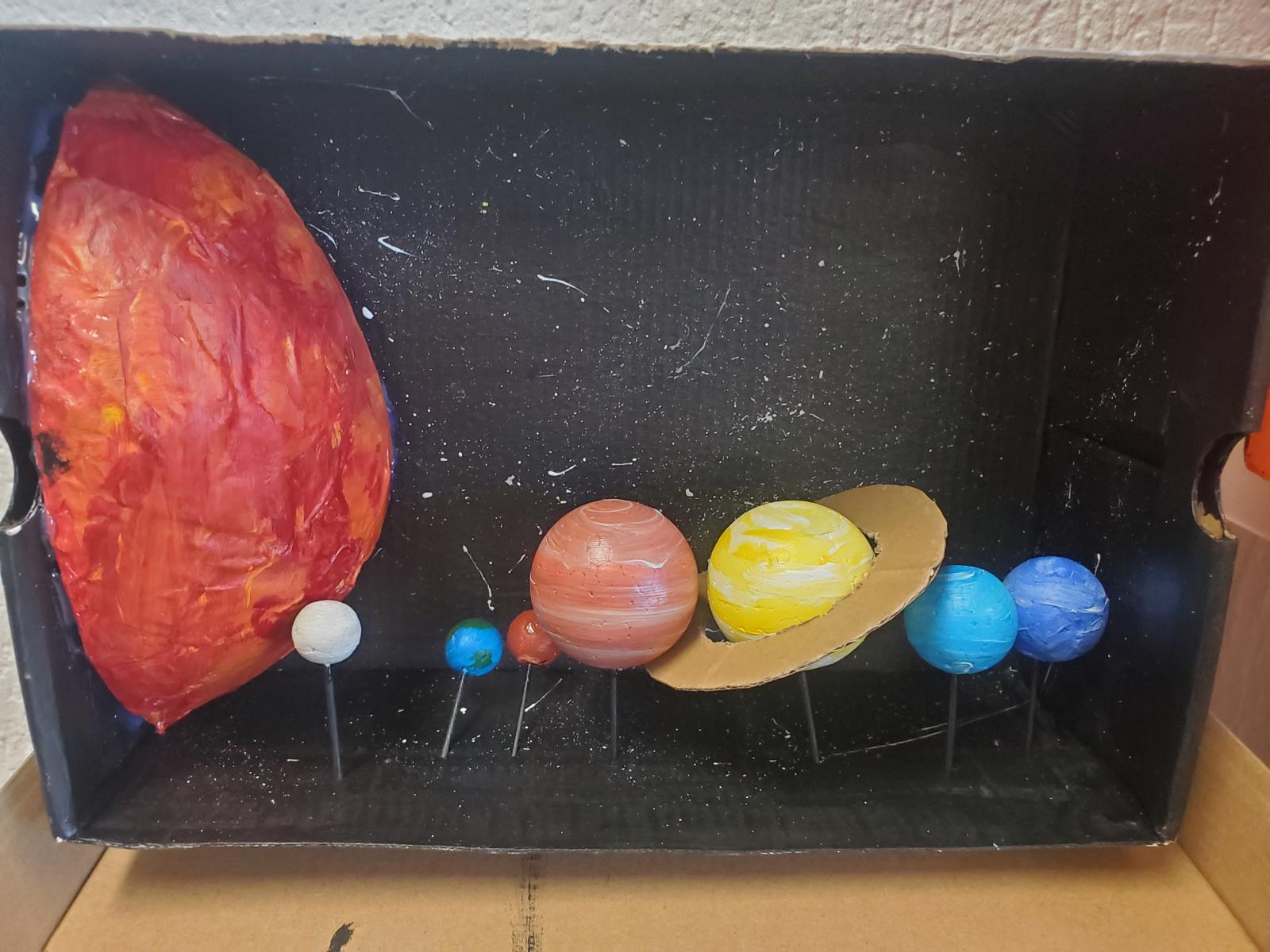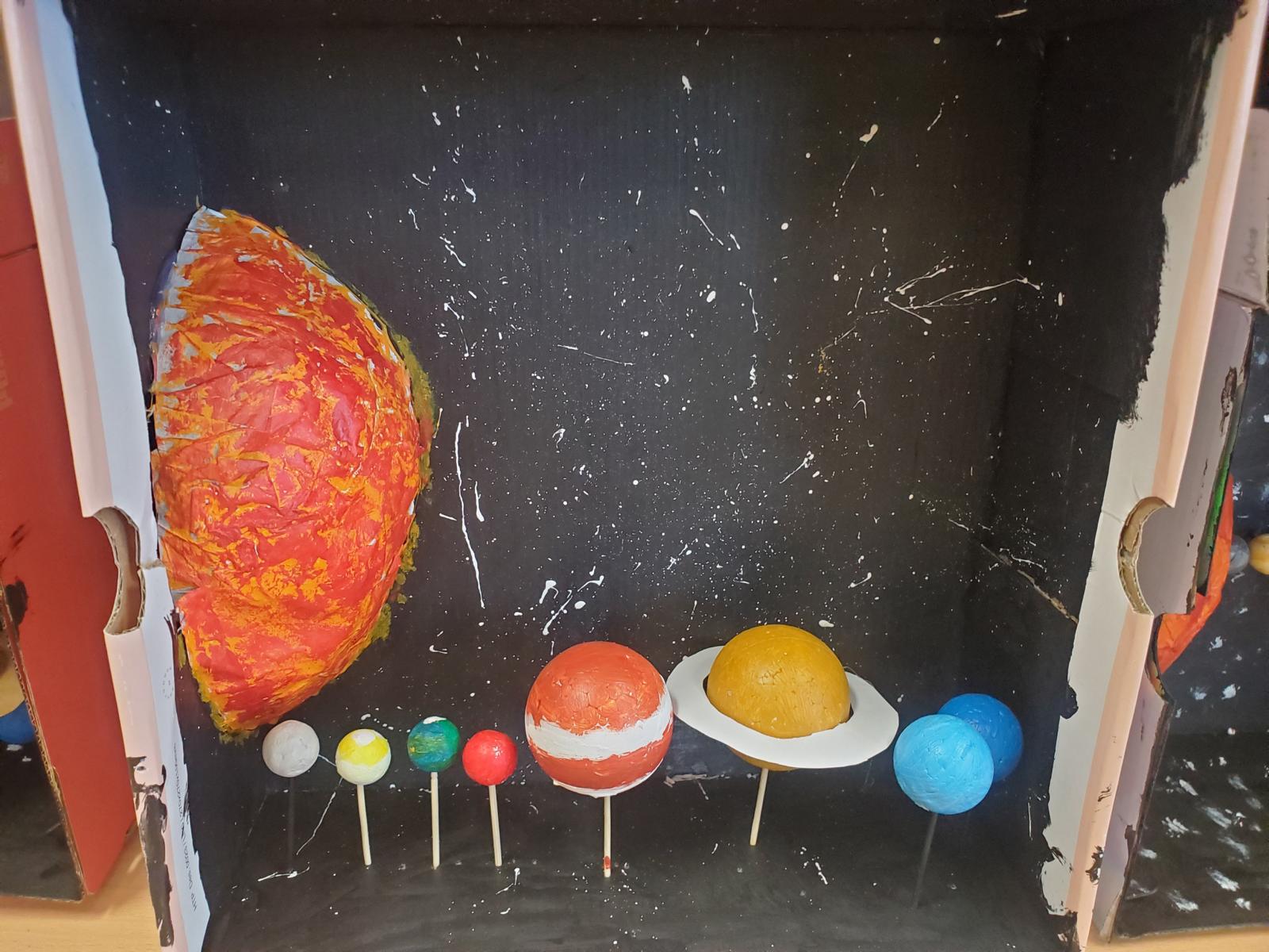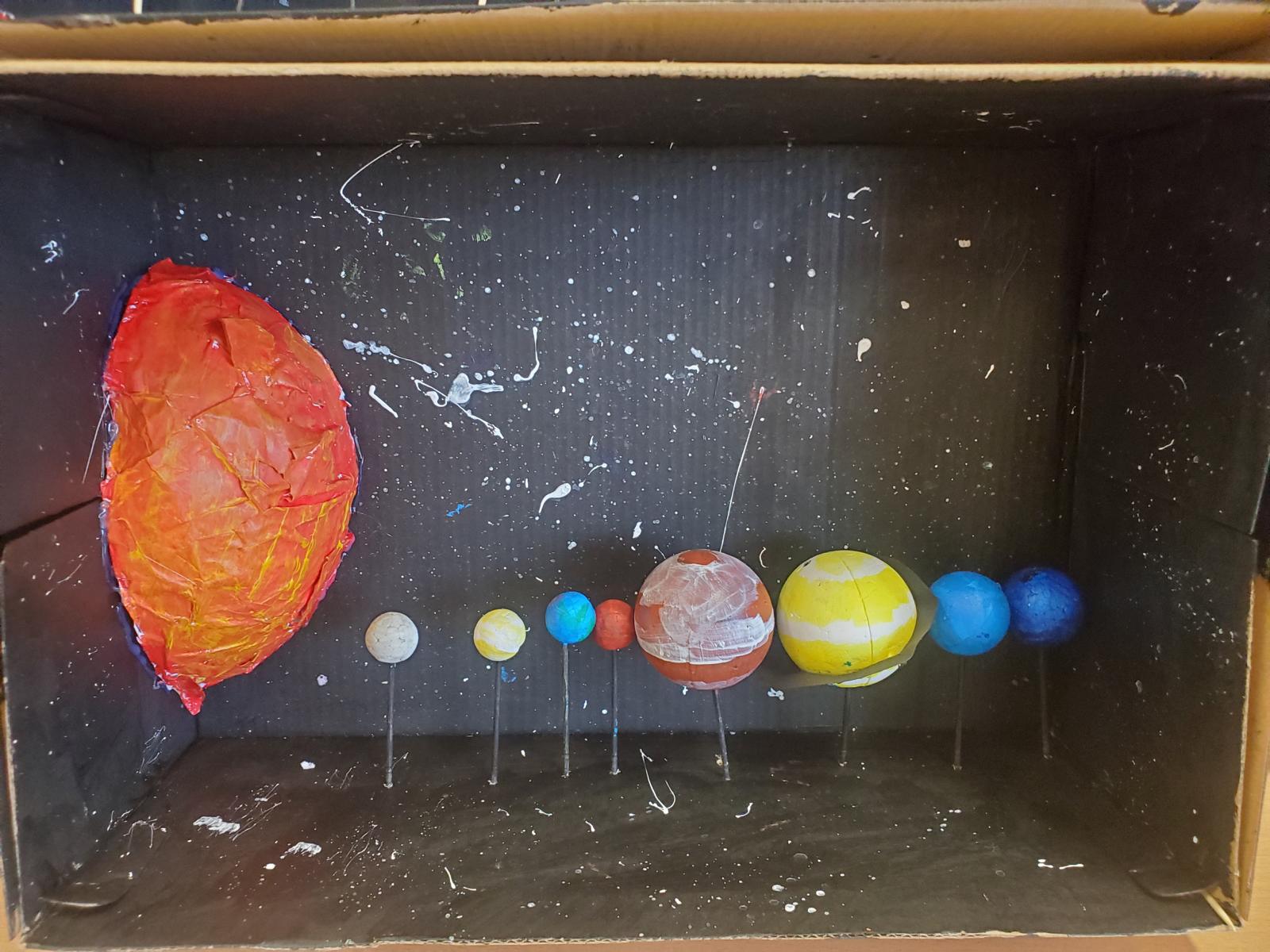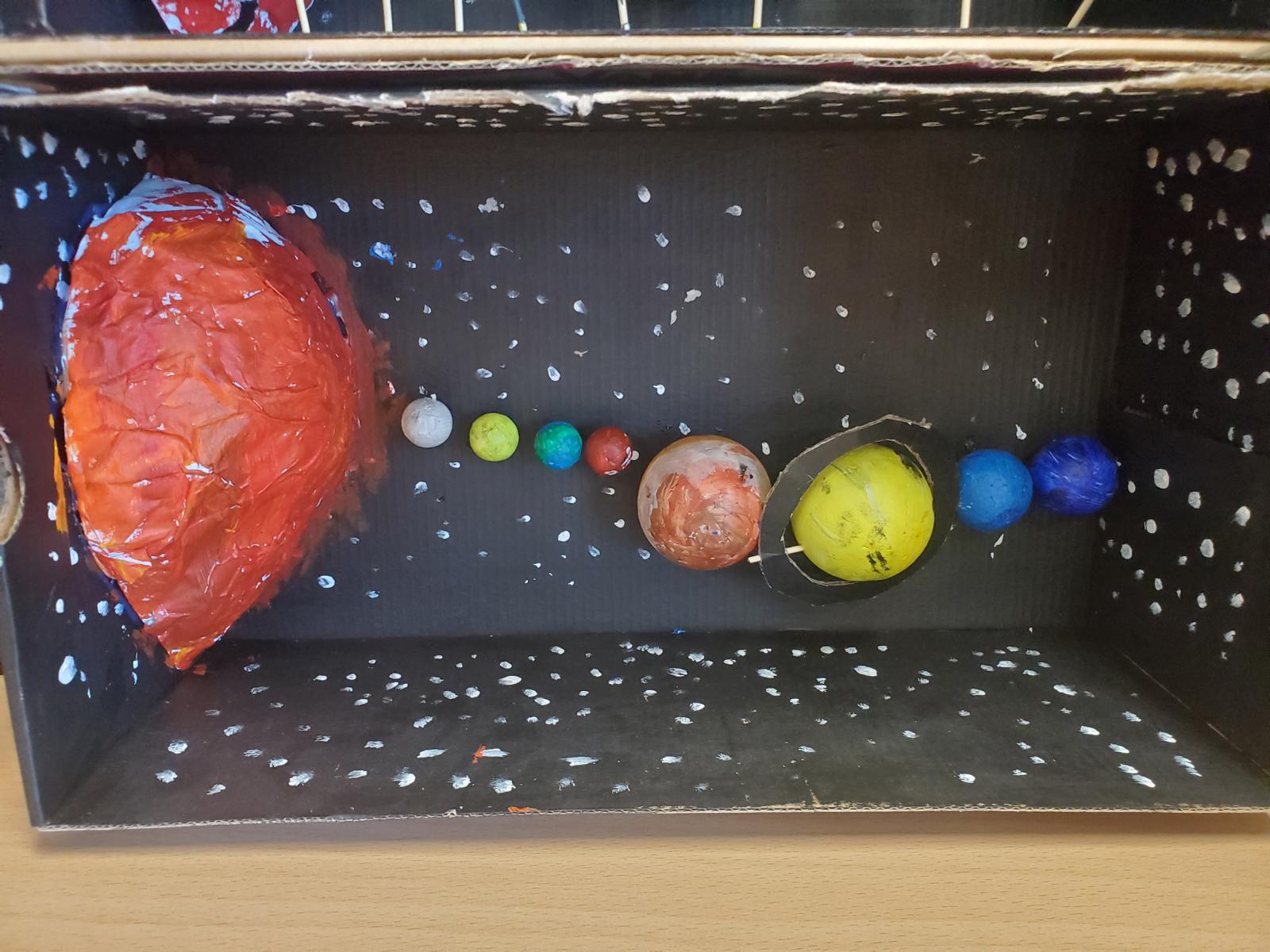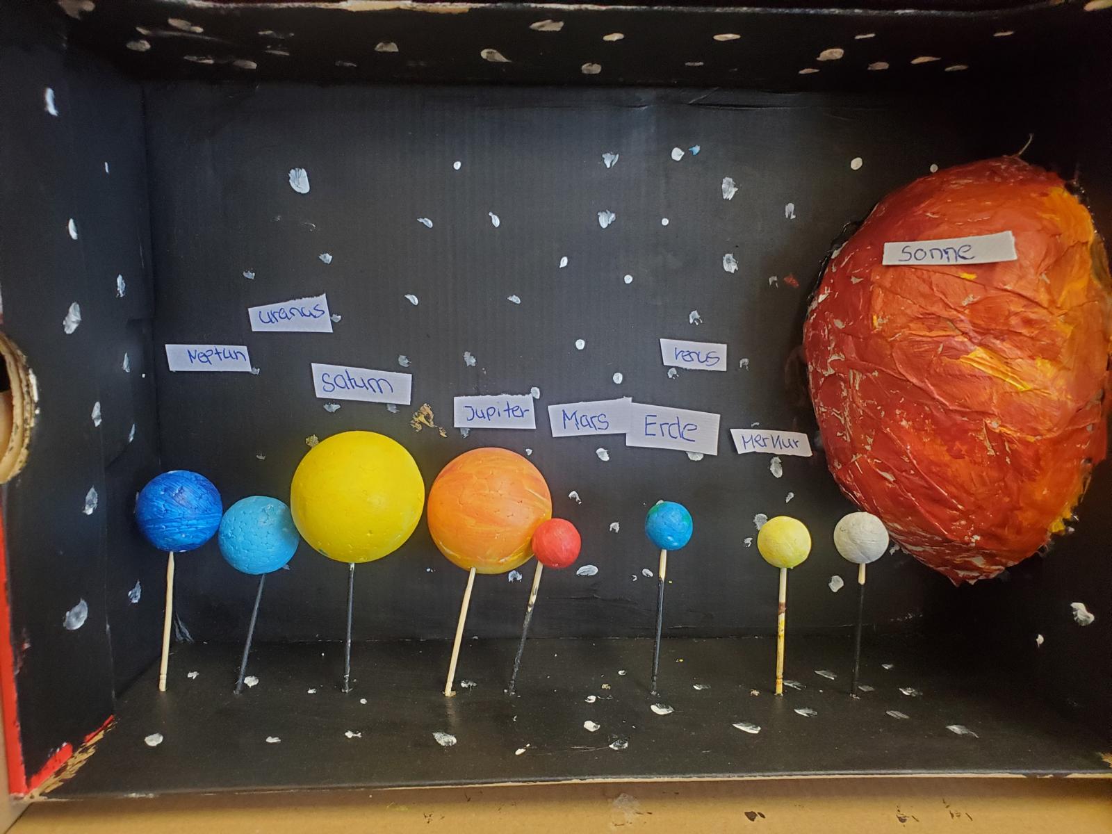 Im Rahmen des MINT-Unterrichts hat die Klasse 7b Modelle unseres Sonnensystems in Schuhkartons hergestellt. Die Ergebnisse können sich sehen lassen: