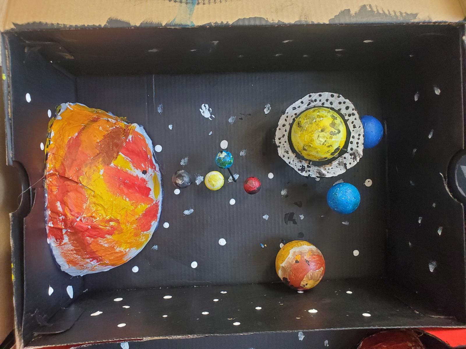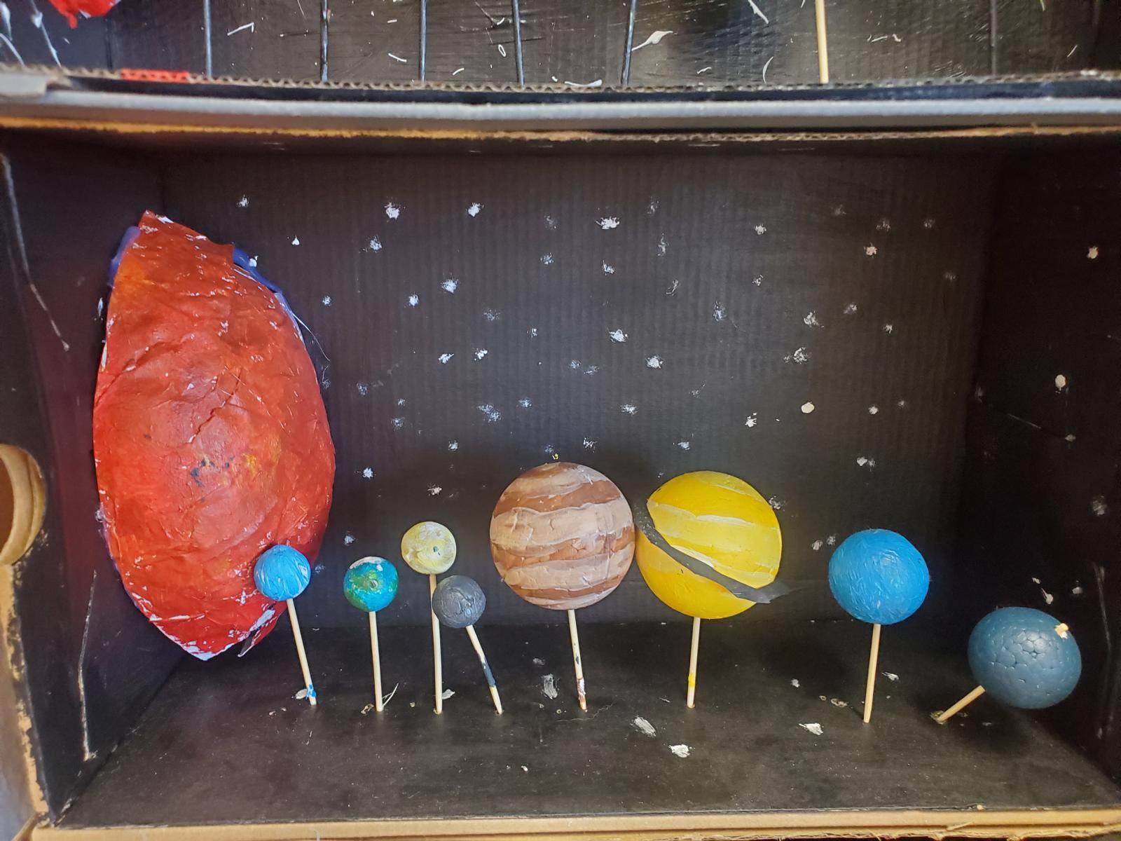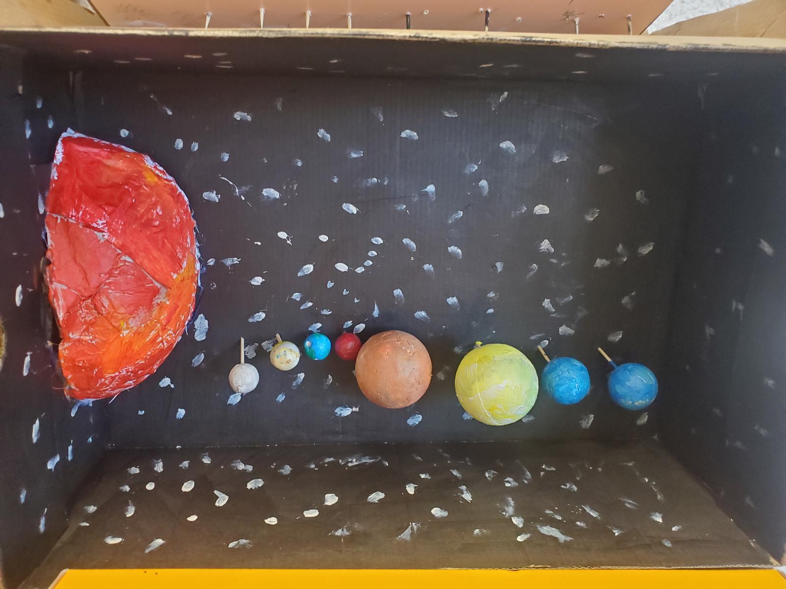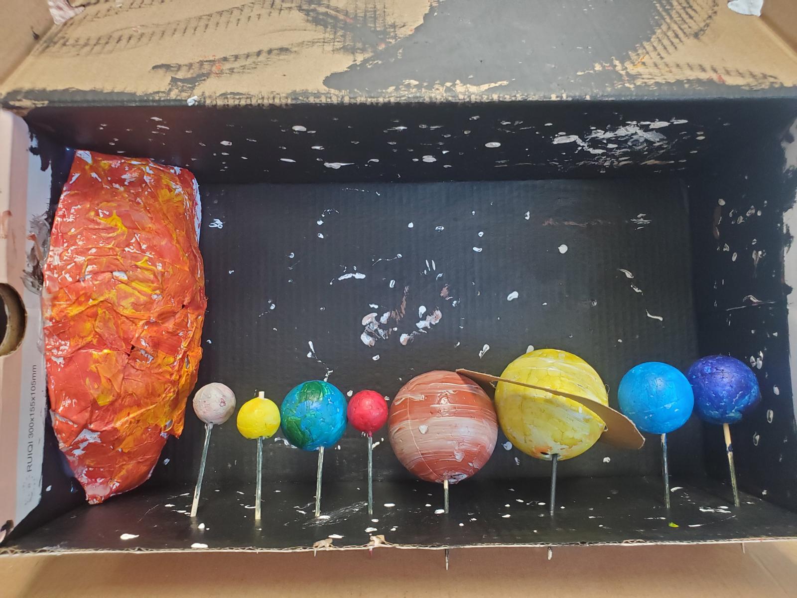 Im Rahmen des MINT-Unterrichts hat die Klasse 7b Modelle unseres Sonnensystems in Schuhkartons hergestellt. Die Ergebnisse können sich sehen lassen: