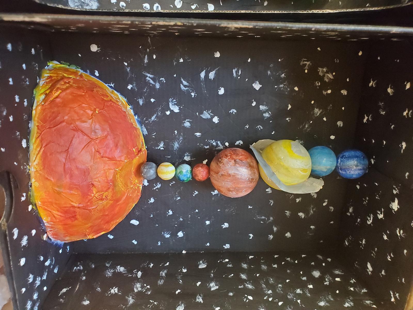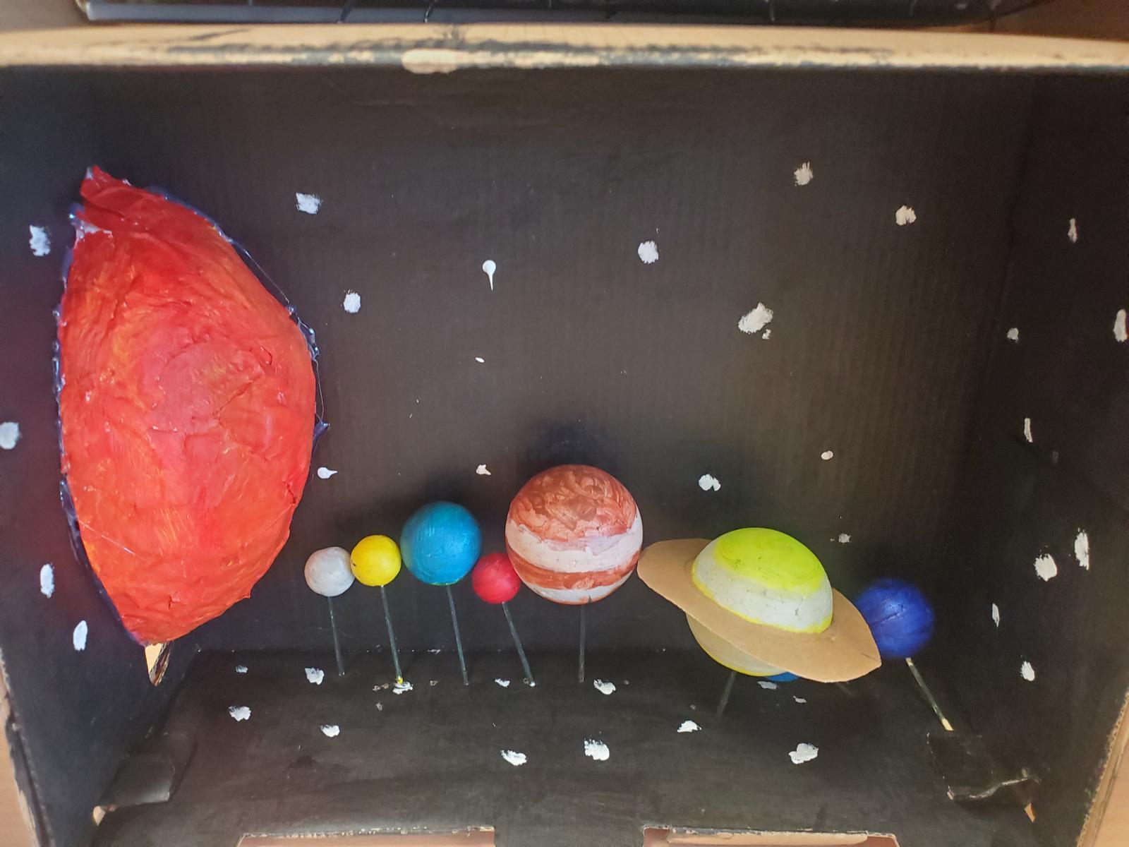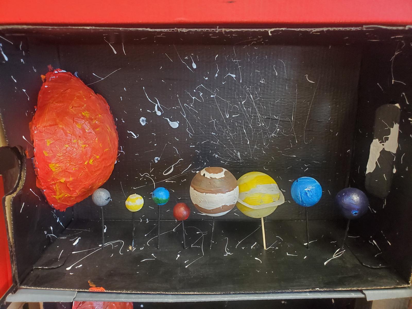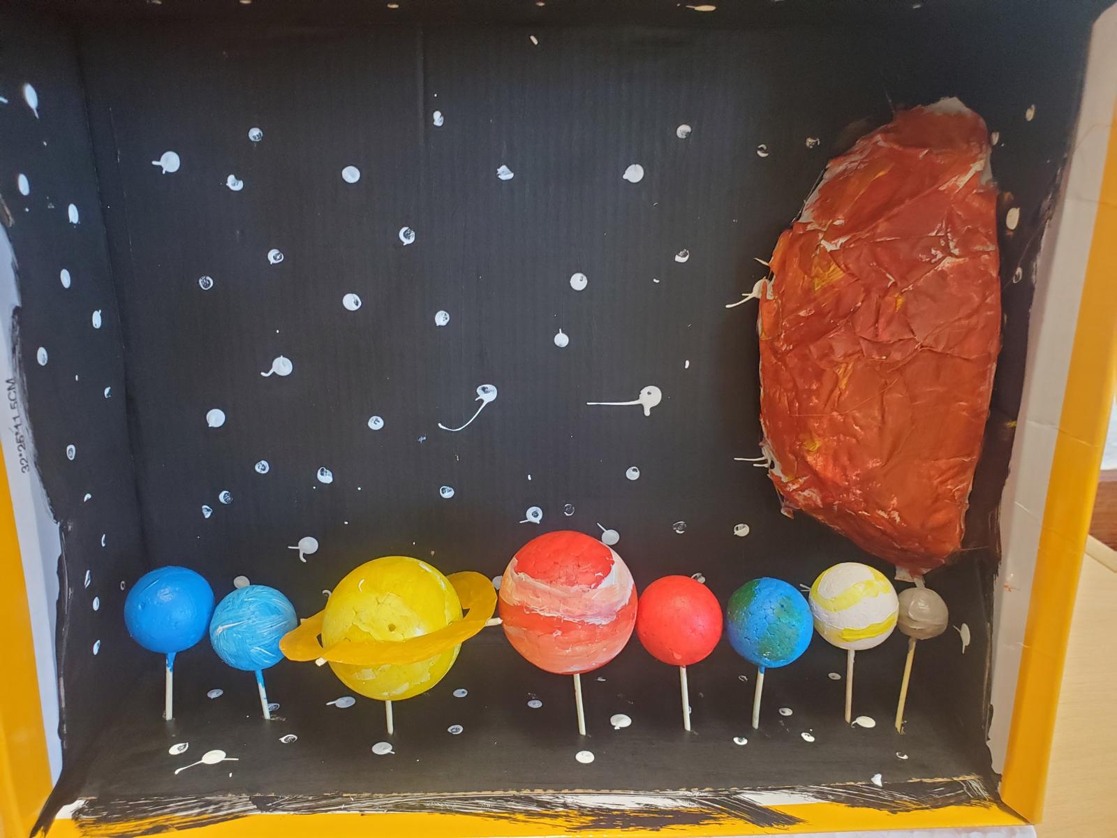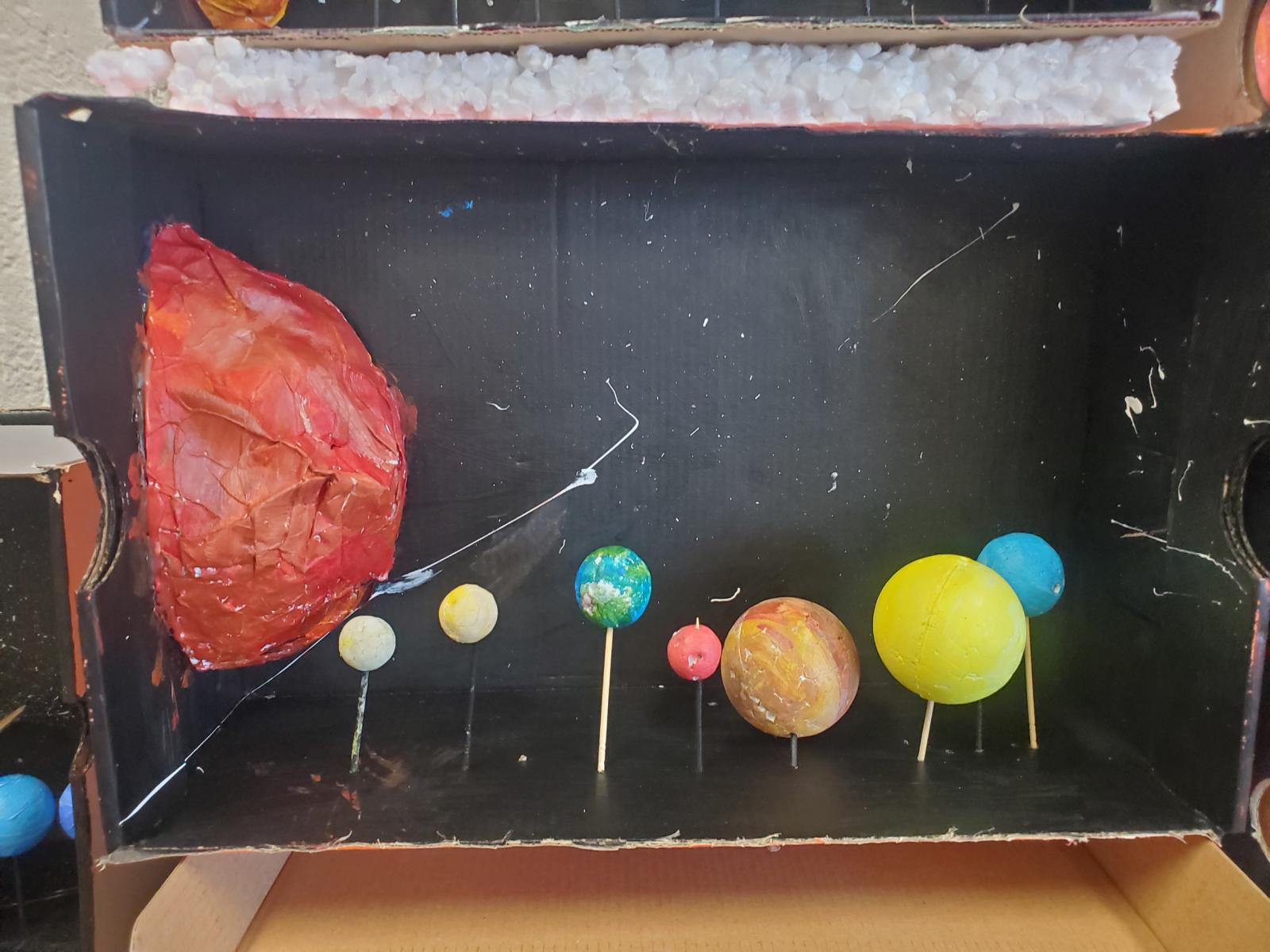 Im Rahmen des MINT-Unterrichts hat die Klasse 7b Modelle unseres Sonnensystems in Schuhkartons hergestellt. Die Ergebnisse können sich sehen lassen:
