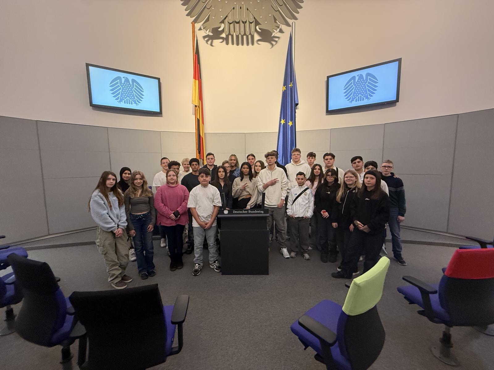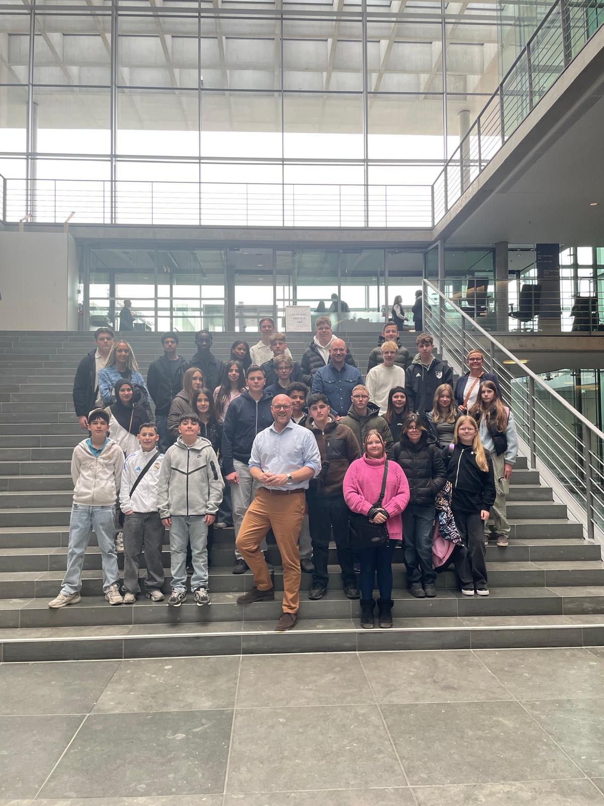 Das absolute Highlight war unser Besuch im Deutschen Bundestag. Wir hatten die einzigartige Gelegenheit unseren Abgeordneten Herrn Peick (SPD) persönlich zu treffen und unsere Fragen direkt an ihn zu stellen – eine Erfahrung, die den Politikunterricht lebendig werden ließ. Dabei war Herr Peick sehr nahbar und erzählte uns viele aus dem Leben eines aktiven Politikers.